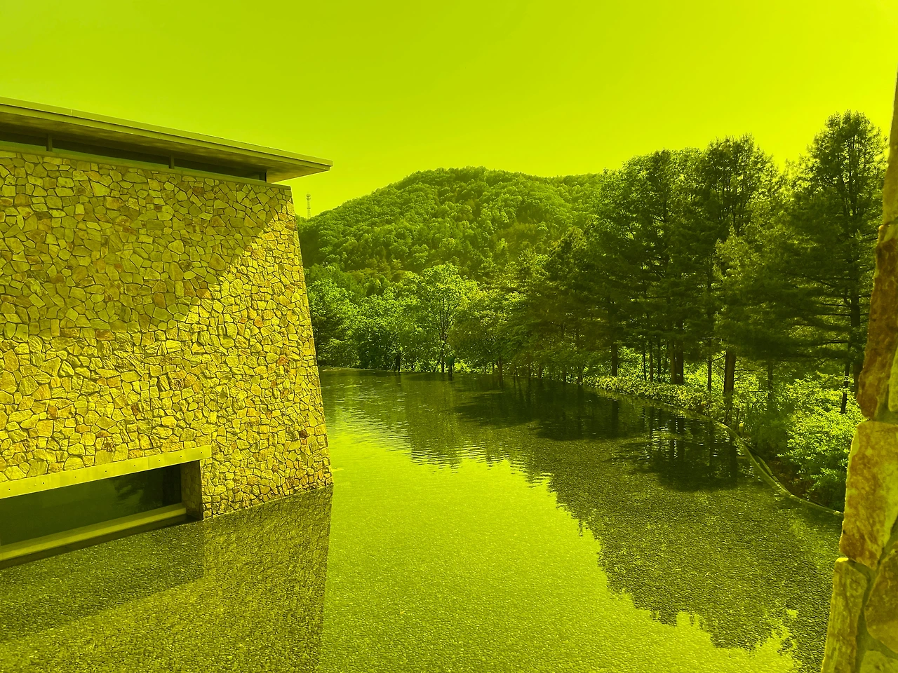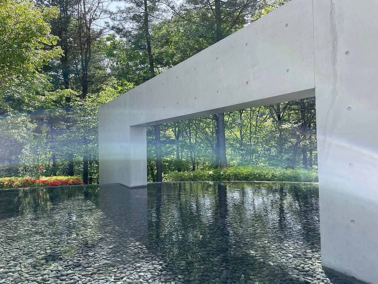 이제 안도 다다오 특유의 '얕은 물'과 어우러져, 물에 떠 있는 듯한 건물들이 나타나기 시작한다.