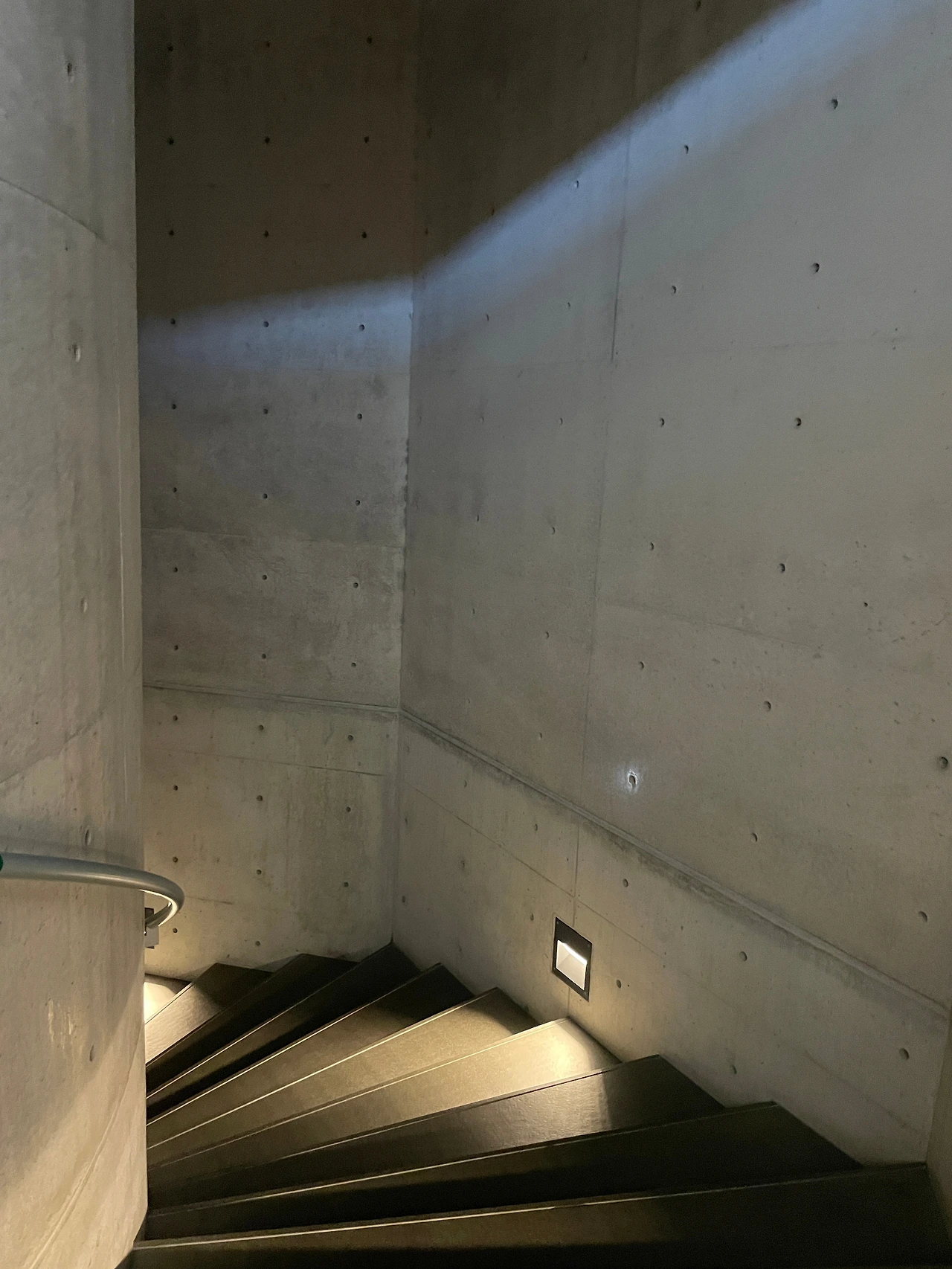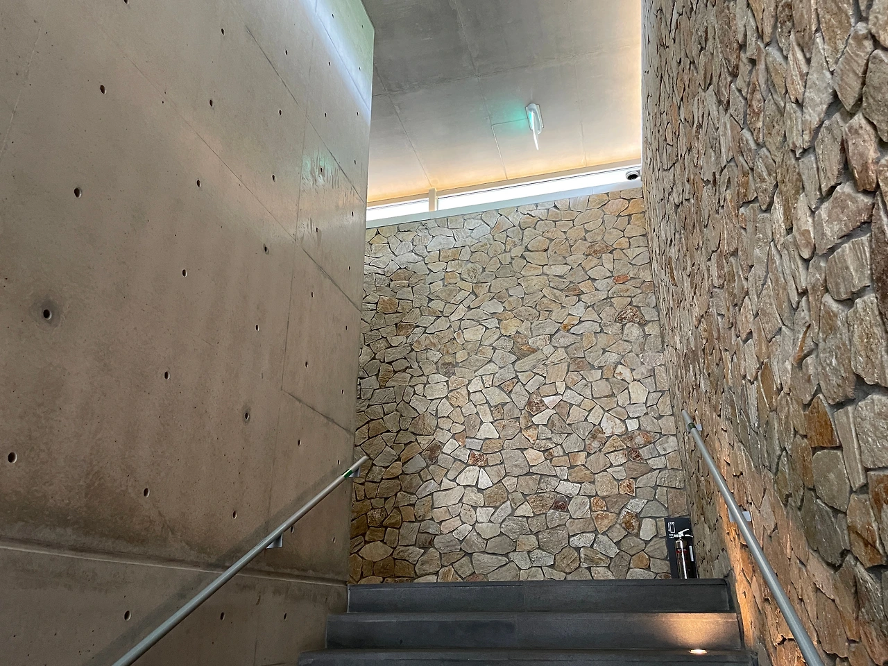 계단 참. 외벽은 돌, 내벽은 노출 콘크리트. 그런 구성이구나.
