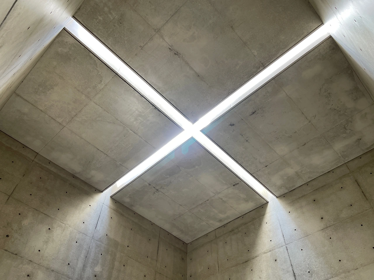 '빛의 교회'와 같은 십자가 패턴을 천장에 구현해 놓았다. 왜 여기를 '빛의 공간'이라고 부르는지 알겠다. 하늘에서 빛의 십자가가 쏟아진다. 기둥도 없이 하중을 어떻게 견디는지 신기하다.