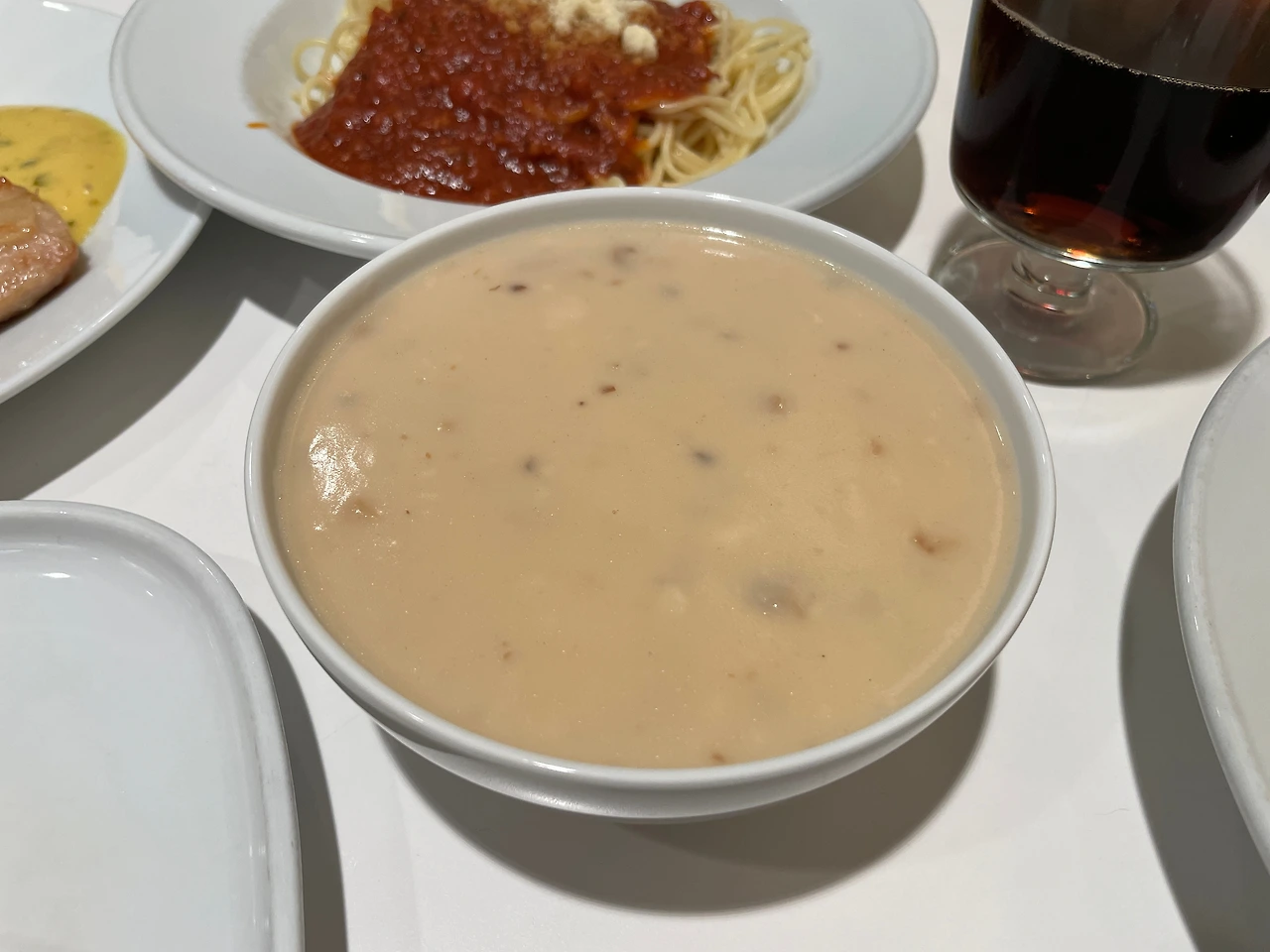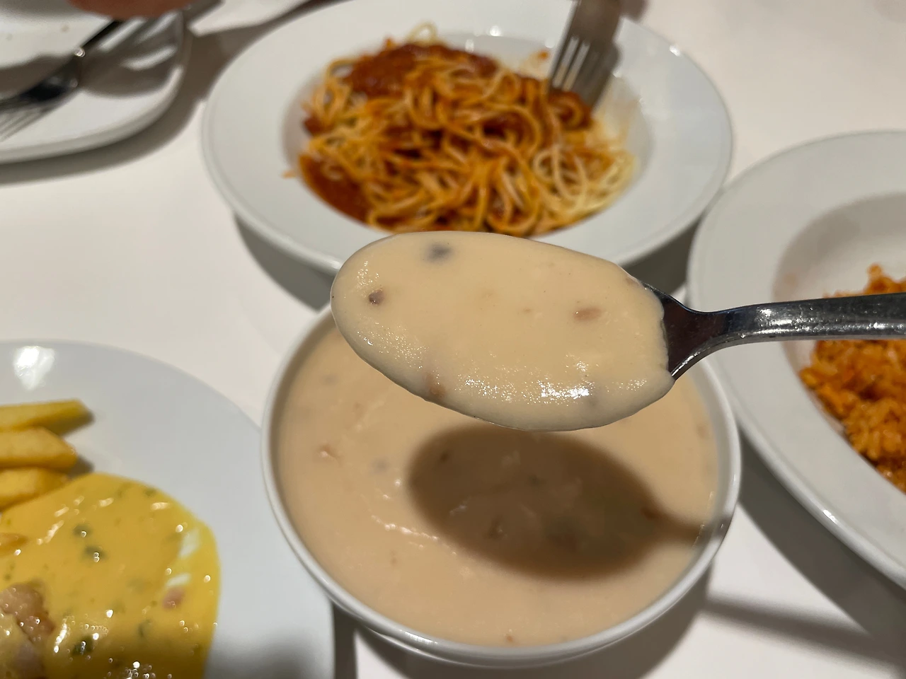 진하고 걸쭉한데, 맛은 돈가스 집에서 나오는 스프만 못하다.