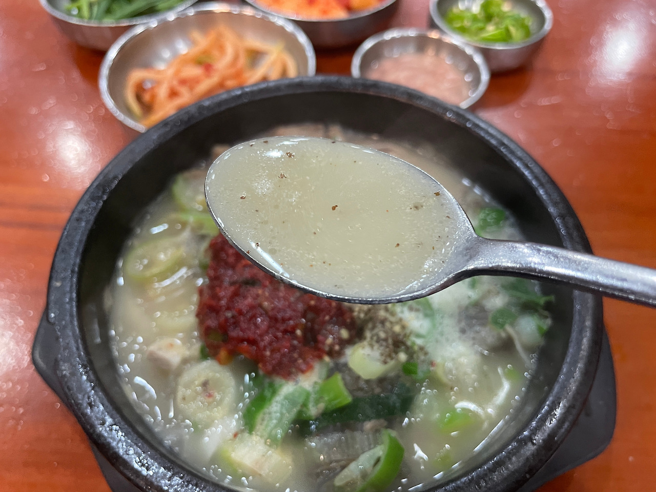 국물 맛을 보자. 응? 맛있긴 한데, 기존 순댓국하고 좀 다른 묘한 맛이다. 뭐지 이거? 당장 생각나지 않으니, 일단 조금 더 먹어보자.