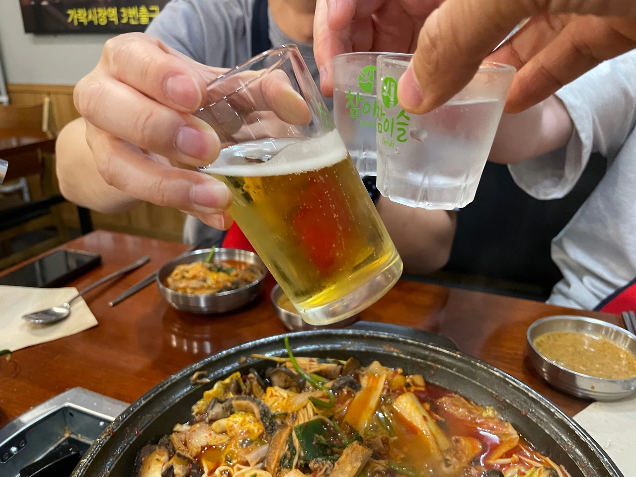 이 국물에 소주를 안 마실 수 없지. 많이는 못 먹지만, 한두 잔은 한다. 부담 없이 과음하지 말고, 알아서 기분 좋을 만큼씩만 마십시다. 강요금지.(나만 잘하면 됨ㅋ)