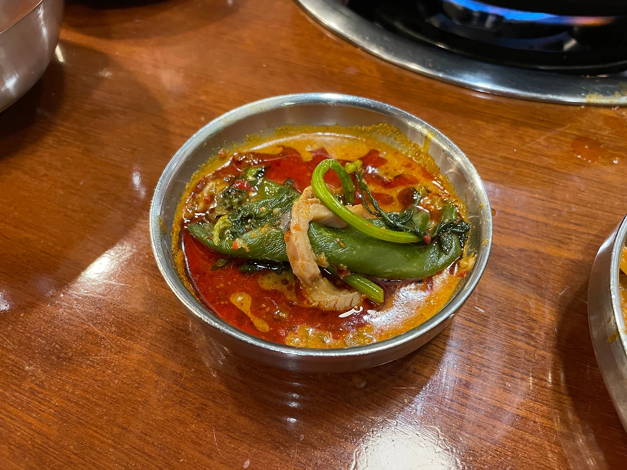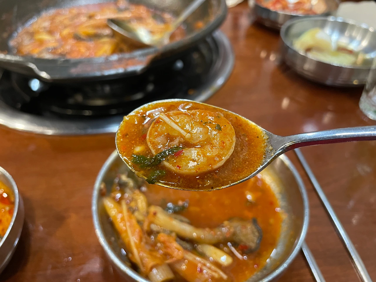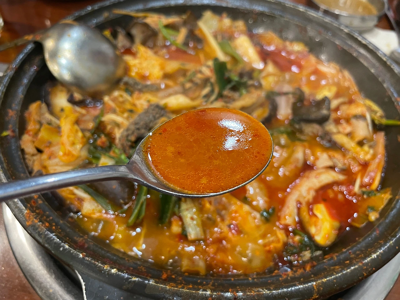 국물부터 먹어보자. ’깊다‘라는 표현이 정확하다. 그리고 거기에 매콤함에 꼬소함이 잔뜩 추가된, 국물계의 끝판왕 격이다. 사진에서도 진한 국물의 질감이 느껴진다.