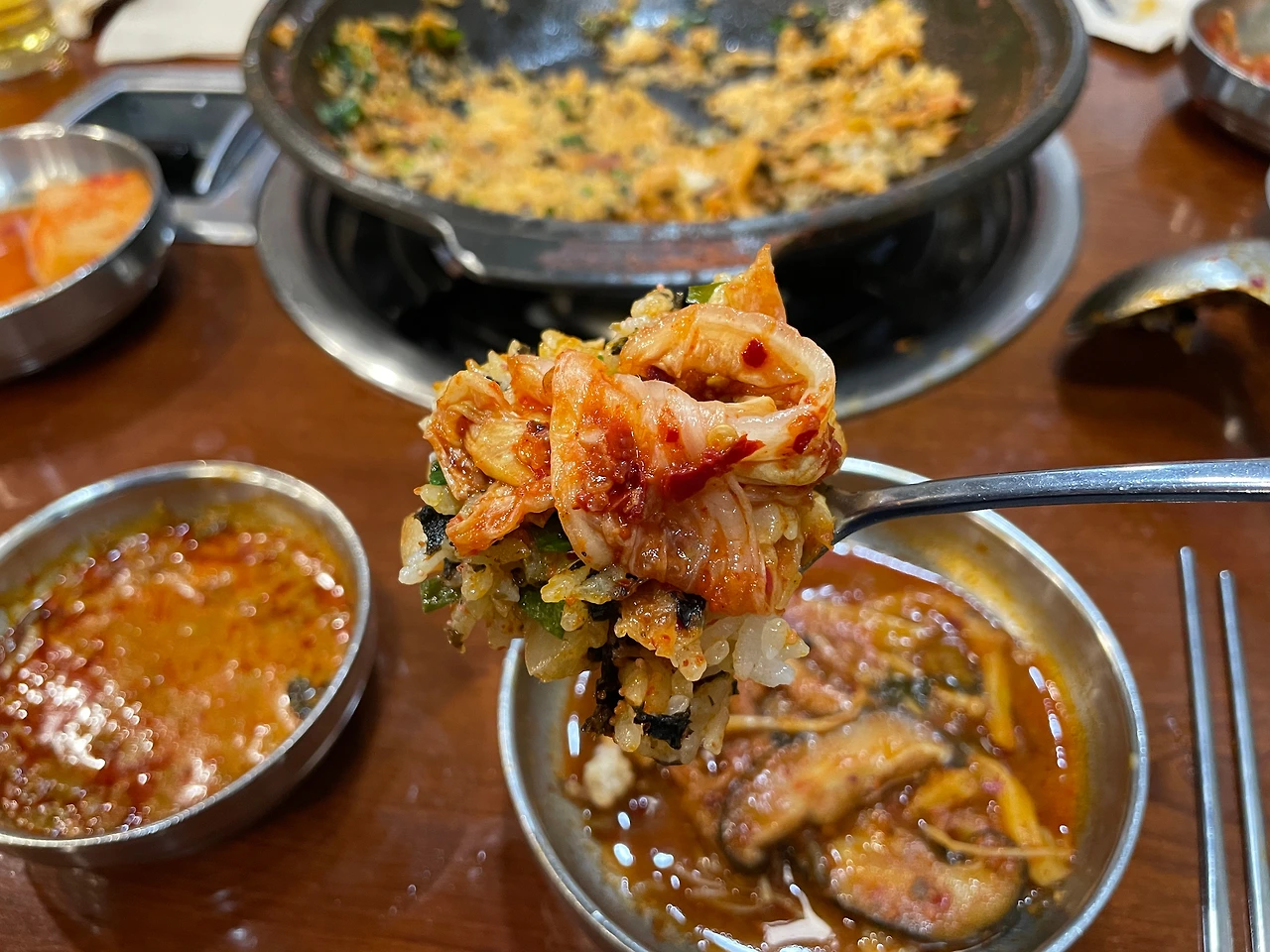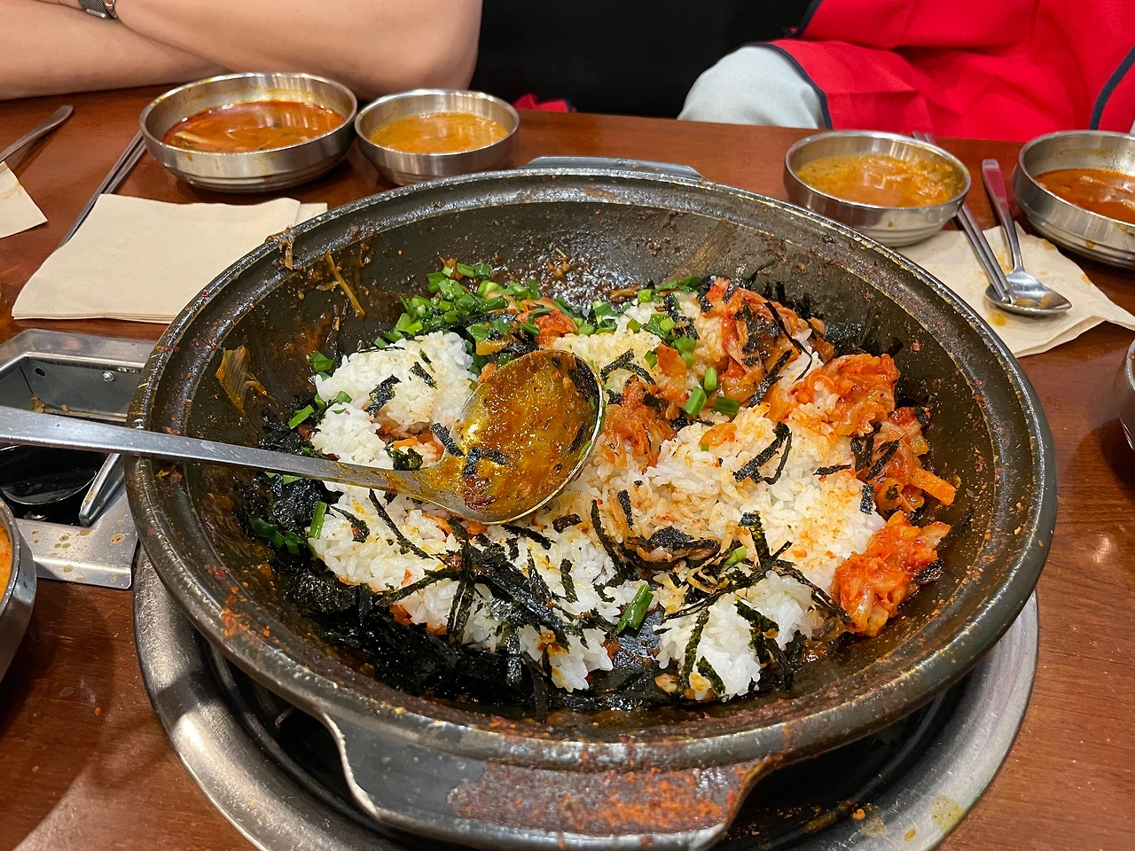 적당히 타서 냄비에 눌어붙은 밥알의 식감이 재밌다.