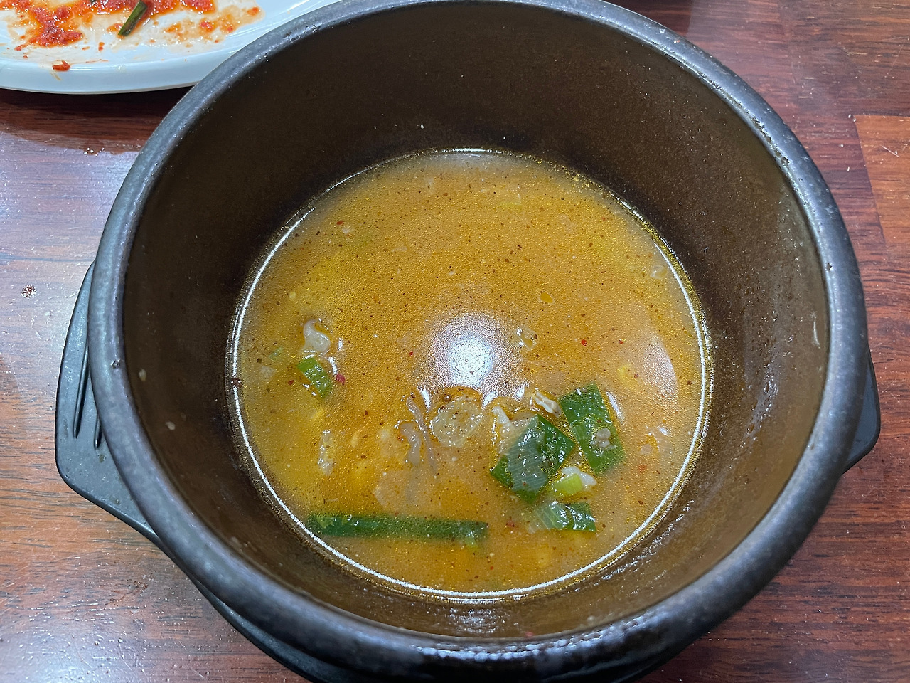 국물. 이렇게 만들었다. 꼬소하고 짭짤하며 적당히 매콤한 사골 육수 완성.