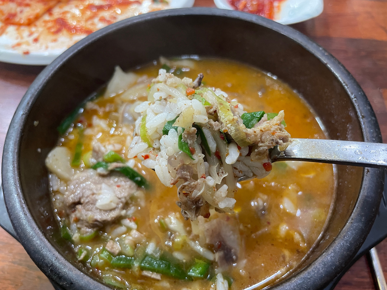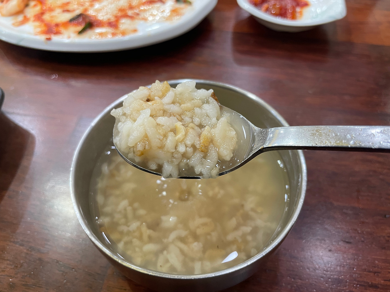 밥과 고기가 국물과 함께 어우러진다.