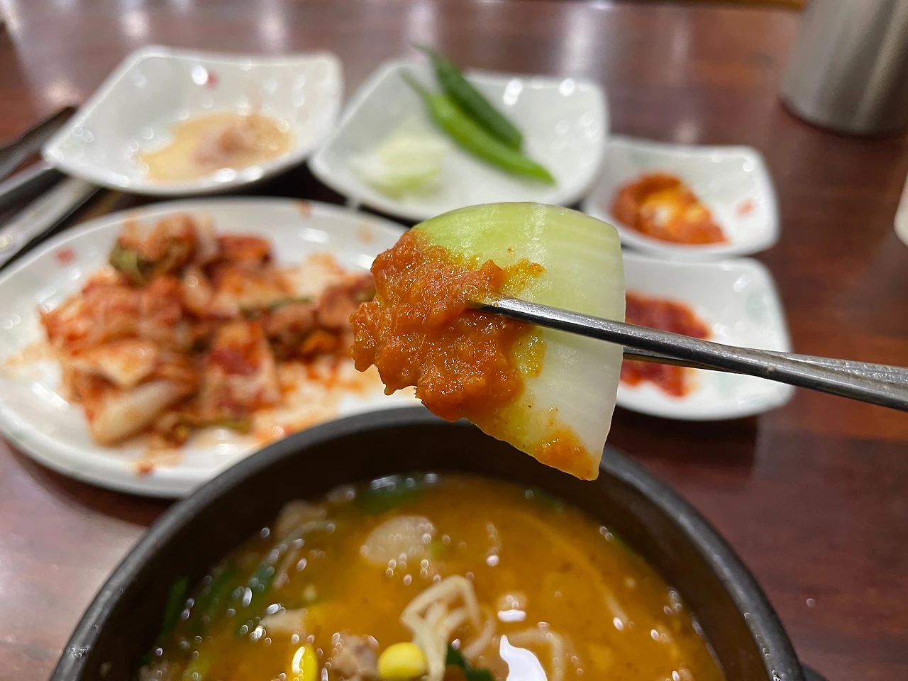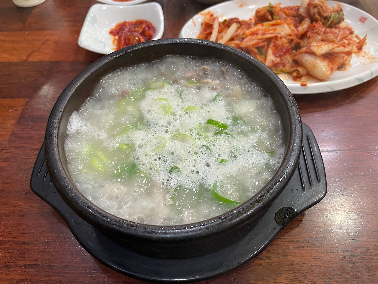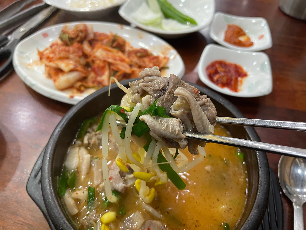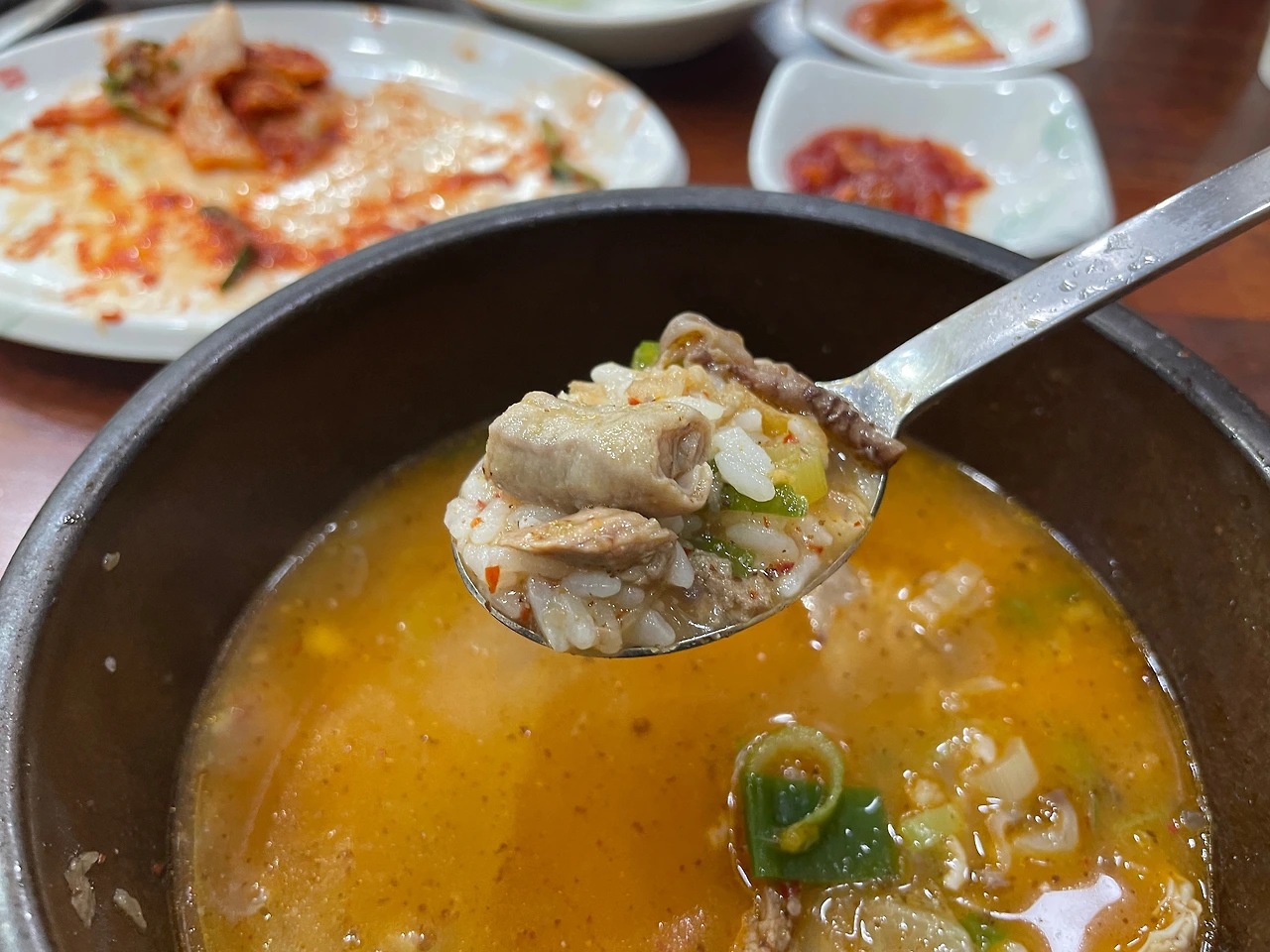 딱 세 숟가락만 밥에 김치를 먹었다. 여기서 멈춰야 한다. 흰밥에 겉절이는 역시 최고의 조합이다. 더 먹으면 배불러서 순댓국 맛을 보기 힘드니, 이제 본격적으로 순댓국에 집중해 보자.