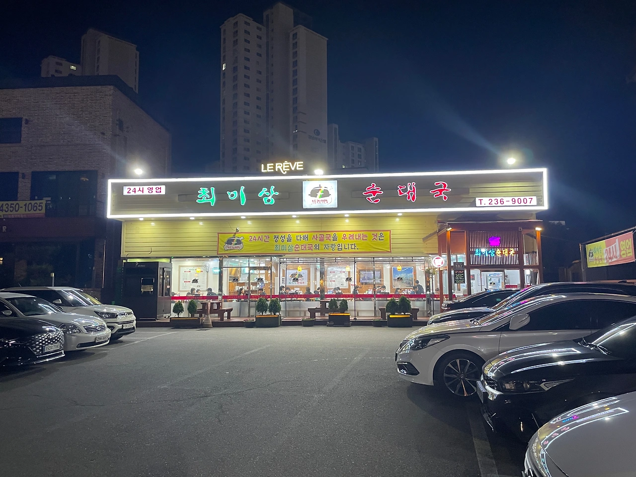 자정이 가까운 이 시간에도 주차장이 가득하다.