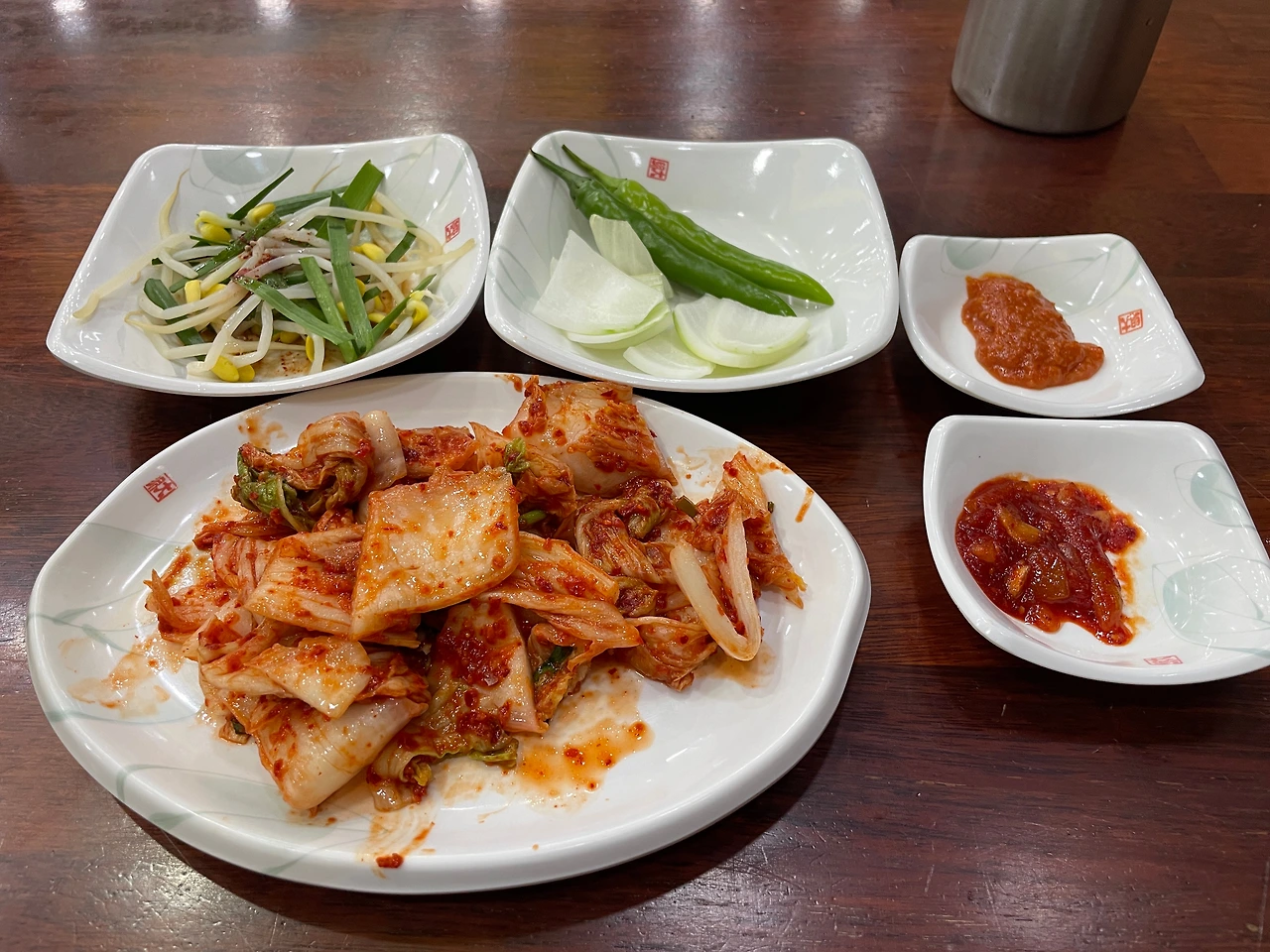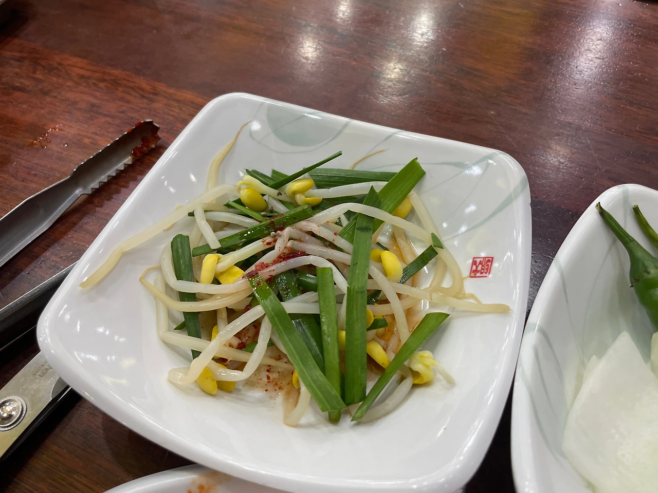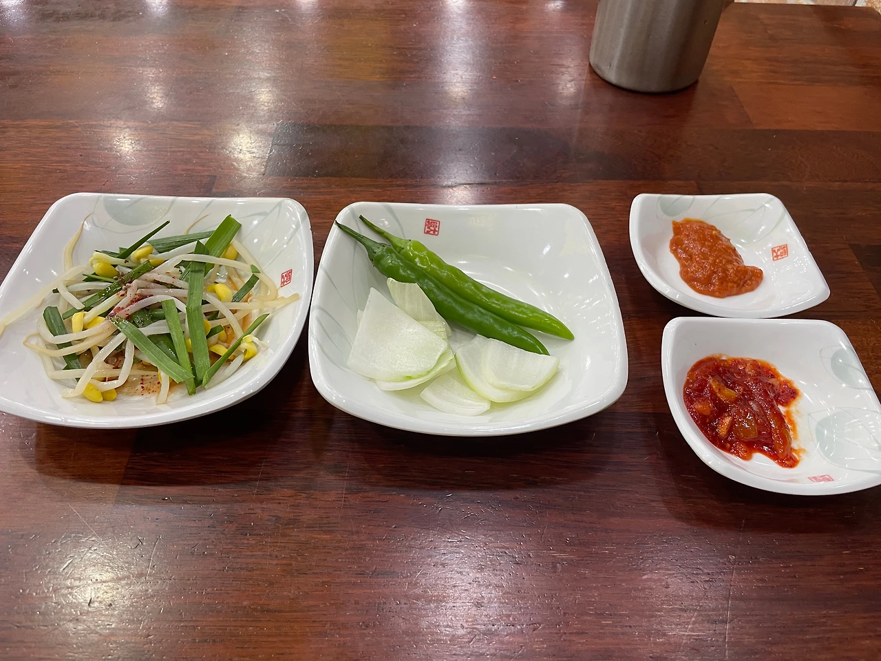 밑반찬. 독특하게 콩나물 무침이 있다. 순댓국에 넣어 먹어야겠다.