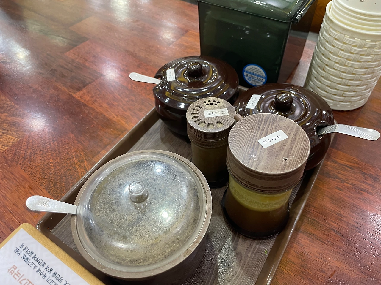 재료는 옆에 있다. 깔끔하게 정리되어 있다. 가게의 청결도는 이런 양념류 관리에서 드러난다고 생각한다.