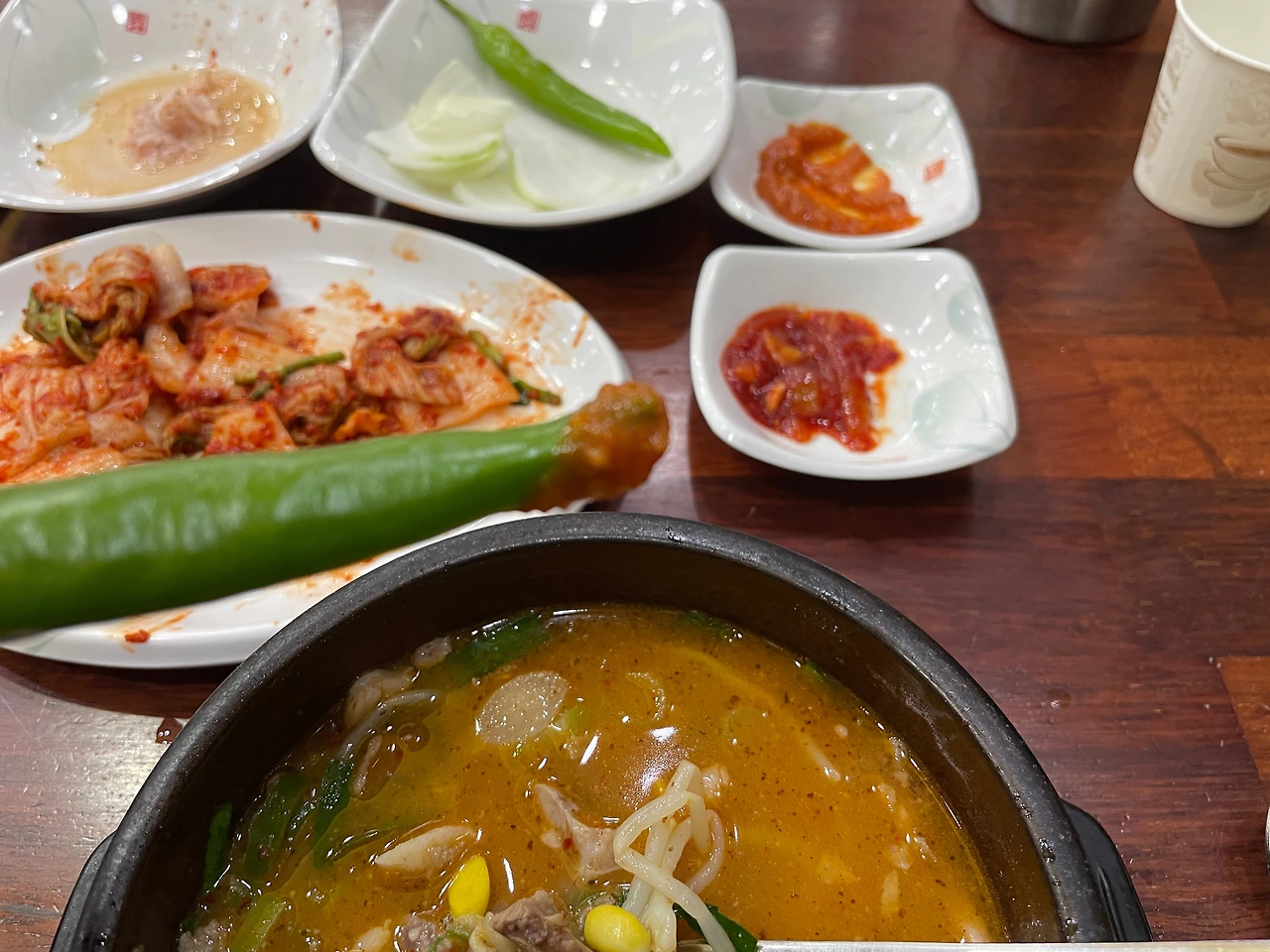 순댓국을 거의 다 먹을 즈음, 숭늉을 가져다주신다. 손님들이 먹는 걸 다 지켜보고 상황을 파악하고 있다는 말인데, 직원분들이 힘들 것 같기도 하고. 나는 편하긴 한데.