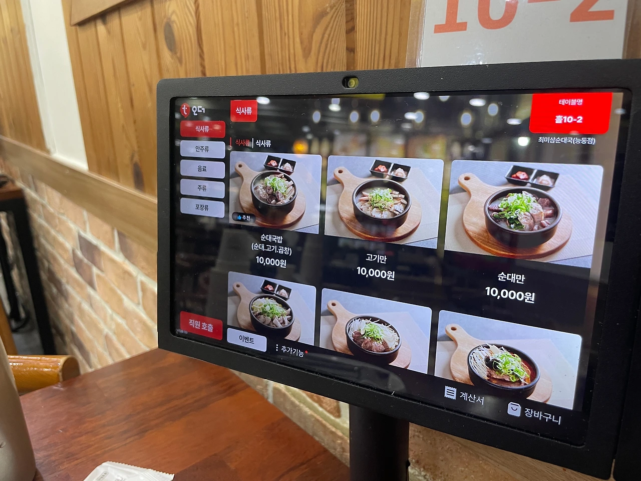 구석에 앉아서 키오스크로 주문한다. 순대국밥(순대,고기,곱창) 하나.
