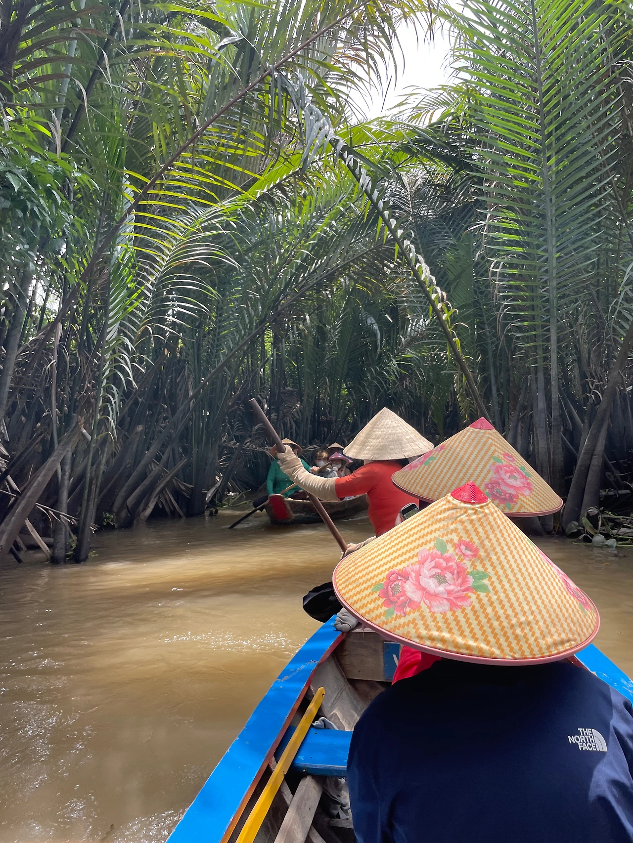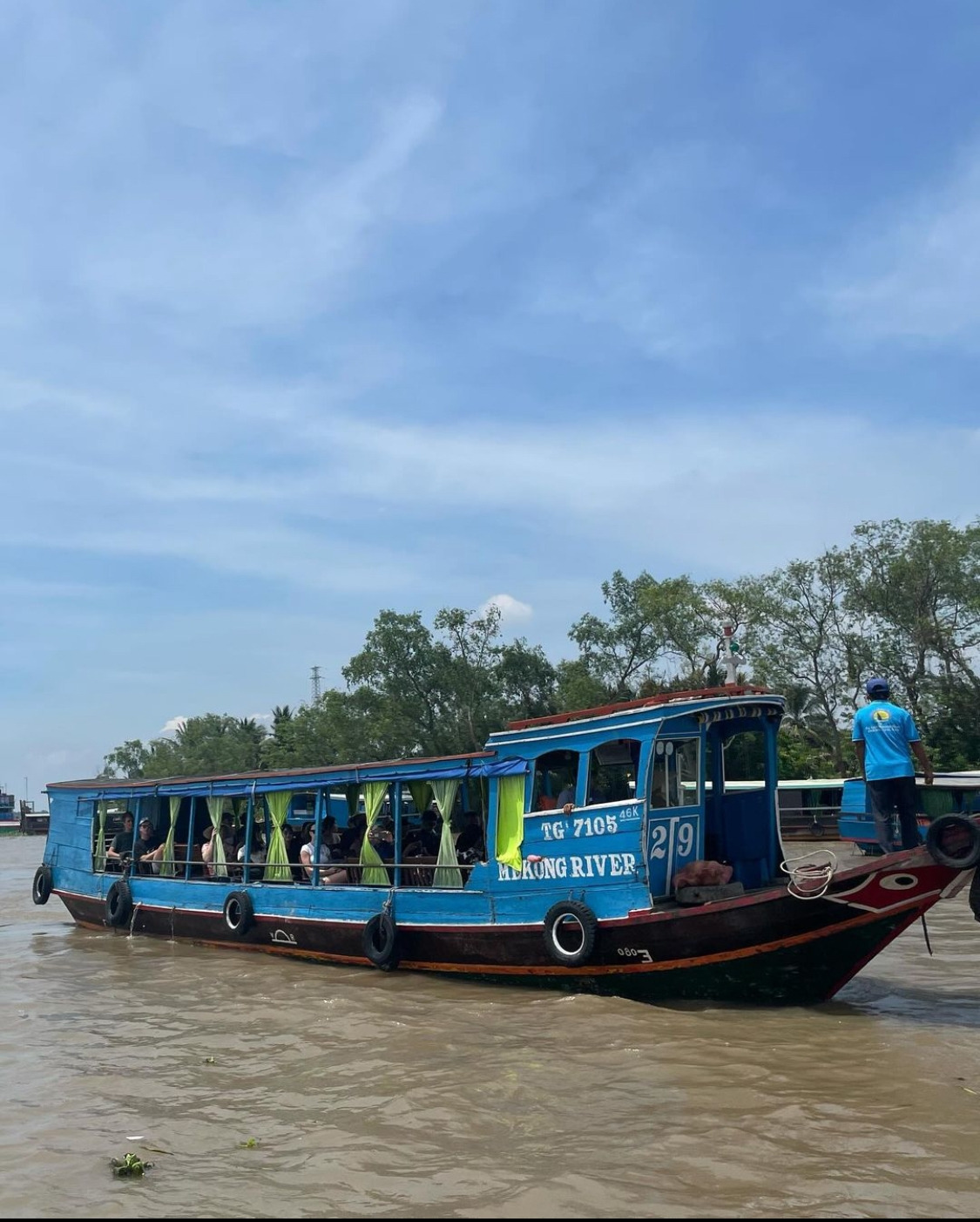 메콩강에서 배를 타고 건넌다.