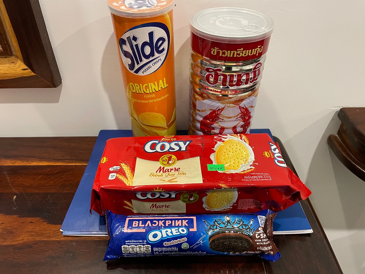 오른쪽 깡통은 한국의 새우깡 느낌인데, 농심 새우깡보다 맛있더라. 오레오는 블랙핑크 에디션인 듯. 베트남에서 블랙핑크 인기가 어마어마하다. 사방에 있는 매장에서 블랙핑크 노래가 흘러나온다.
