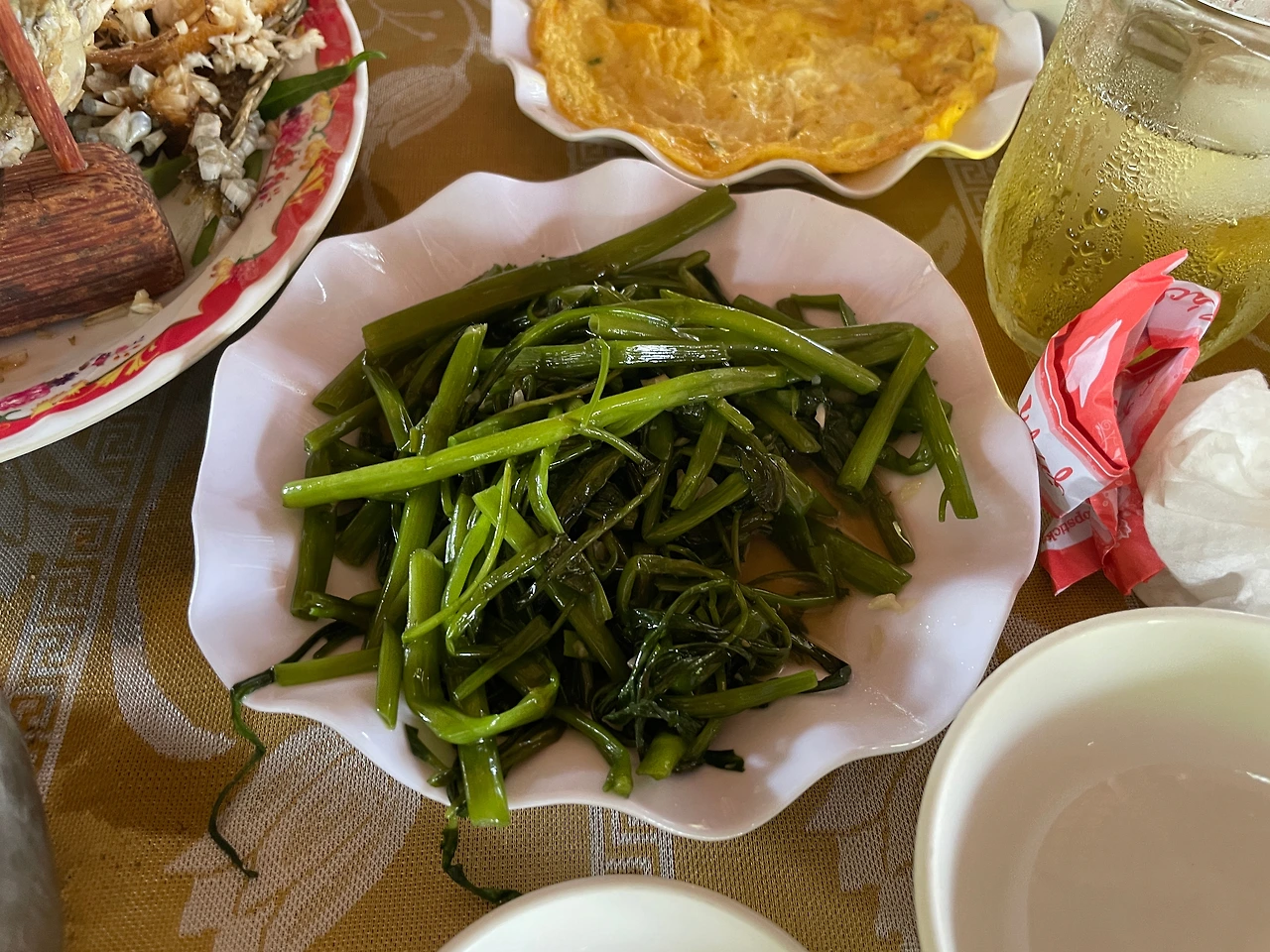 메뉴는 코끼리귀 생선구이, 모닝글로리 볶음 등등