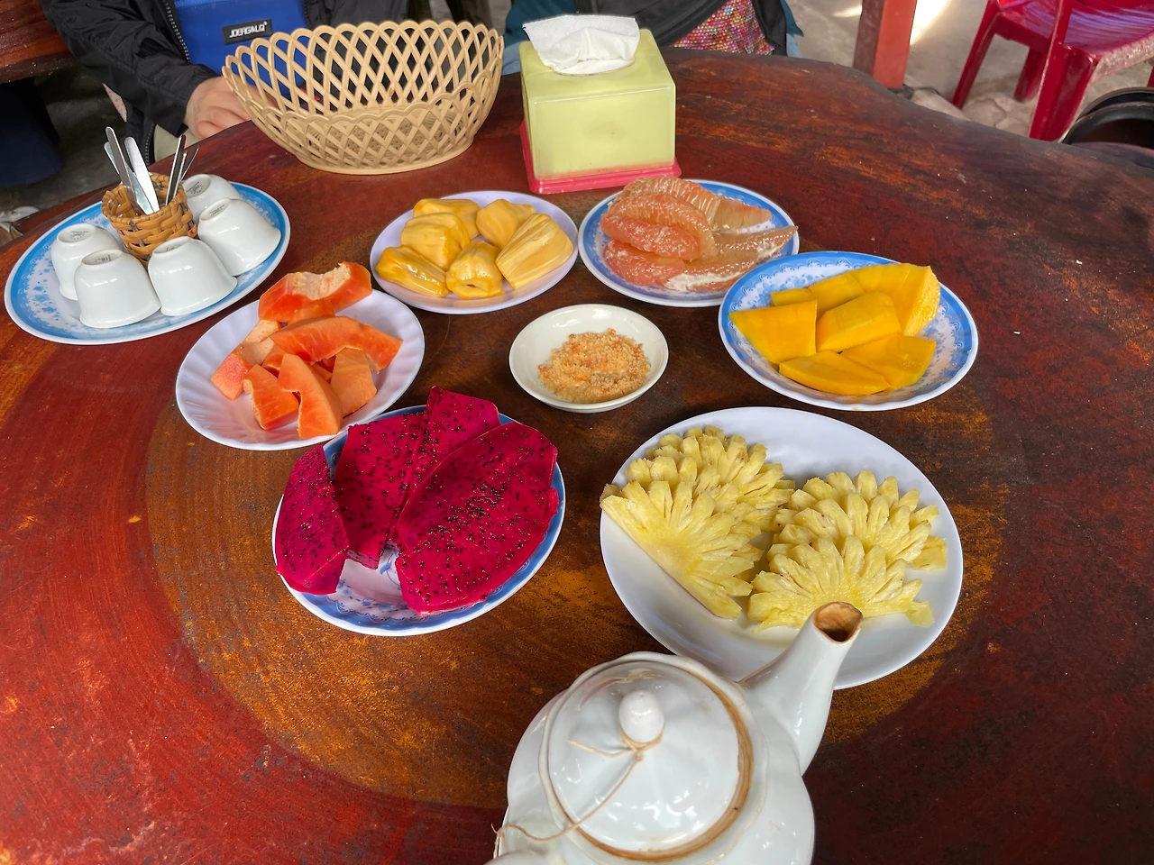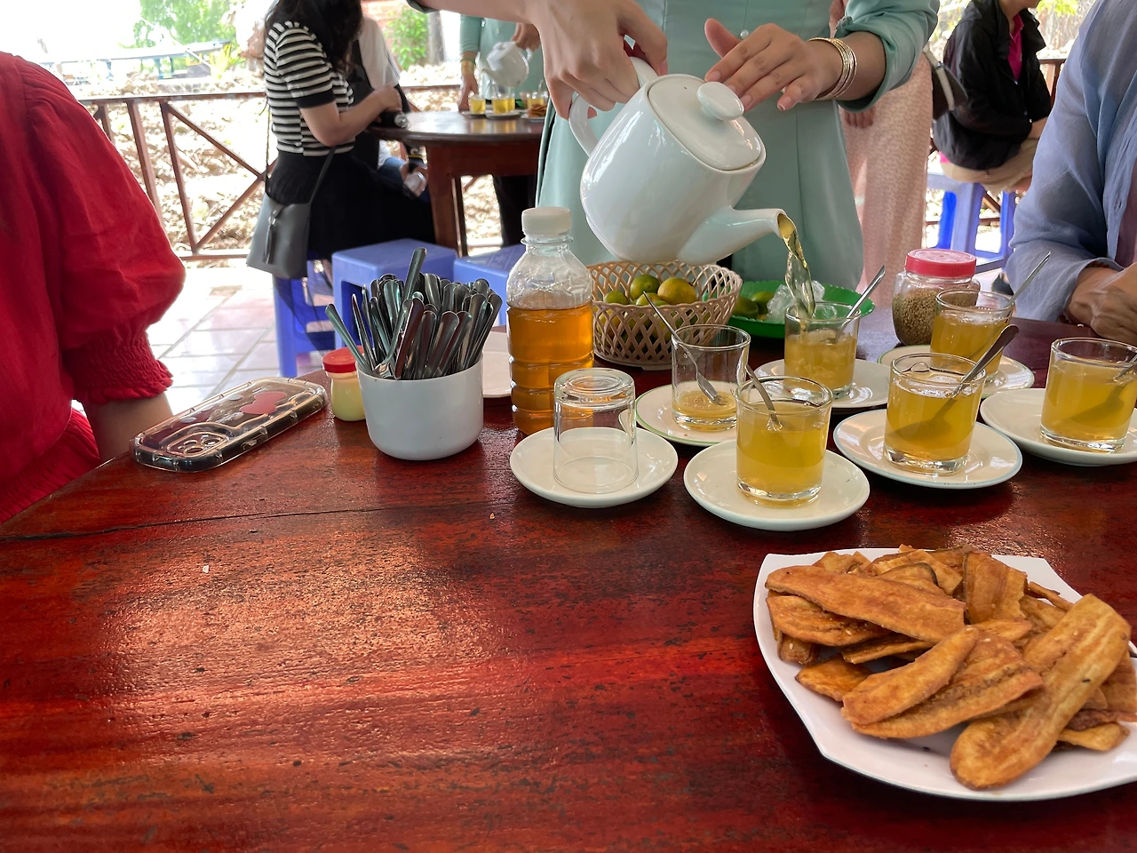 여기서 전통 꿀차도 마시고, 과일도 먹었다.