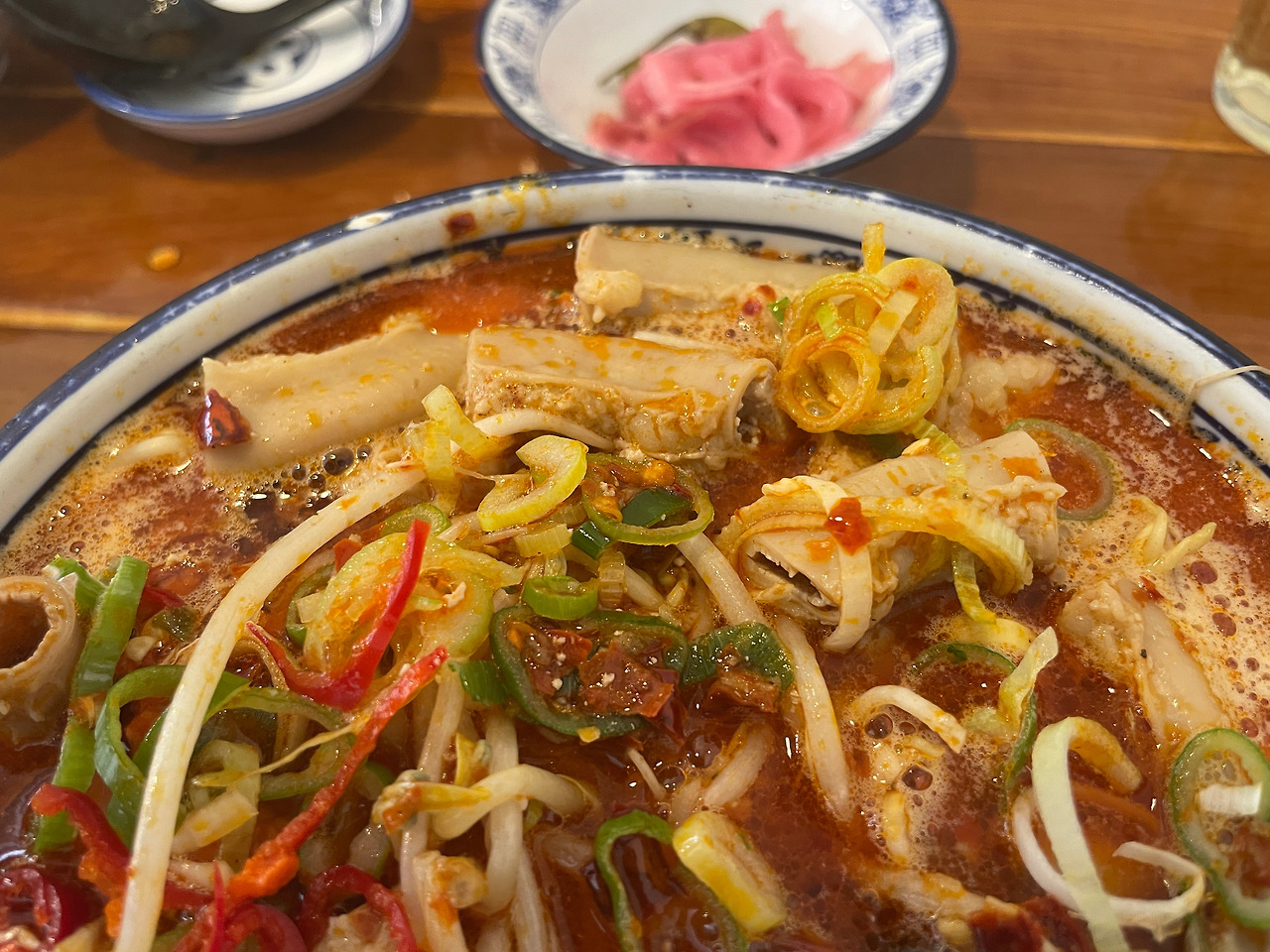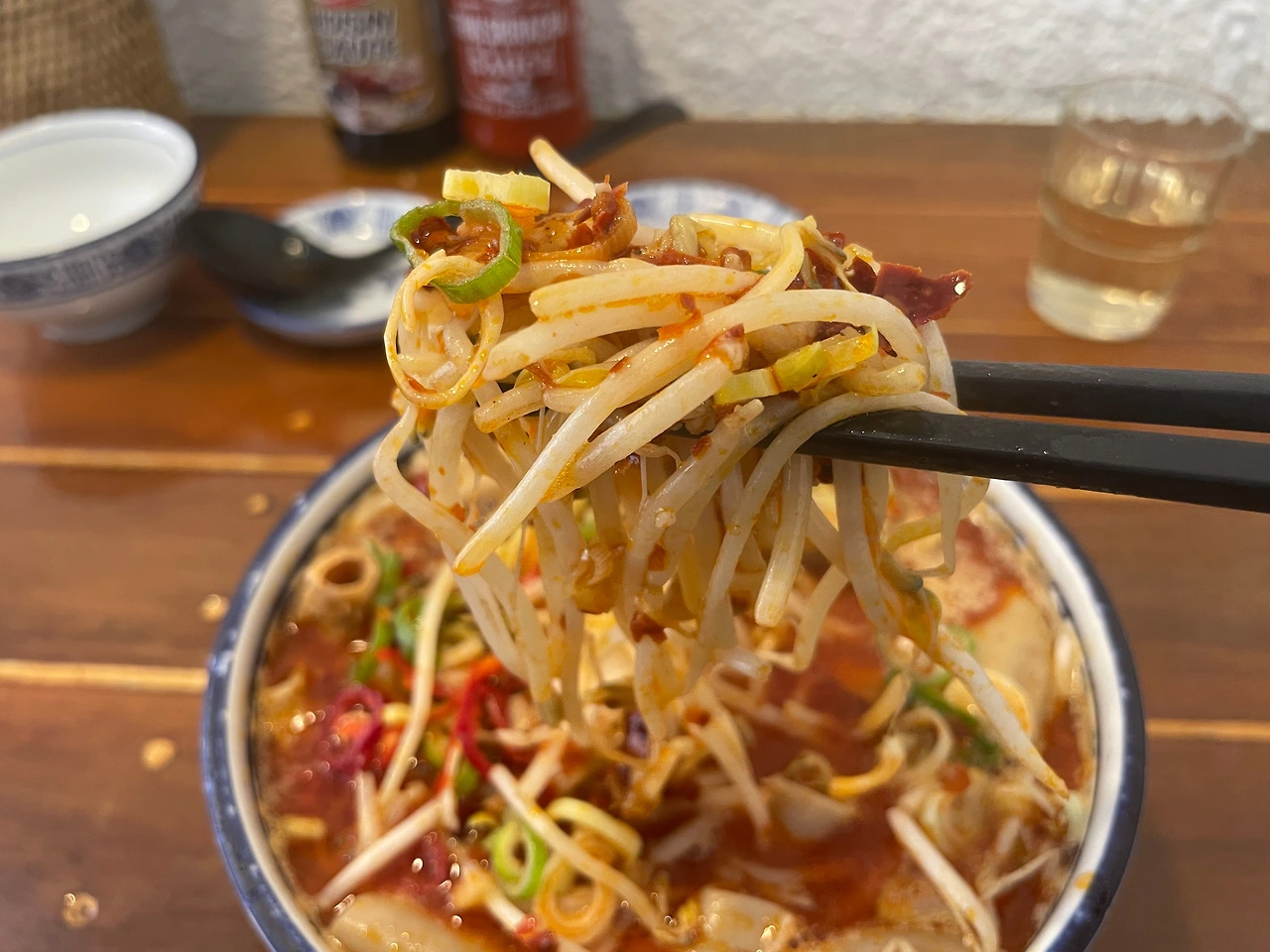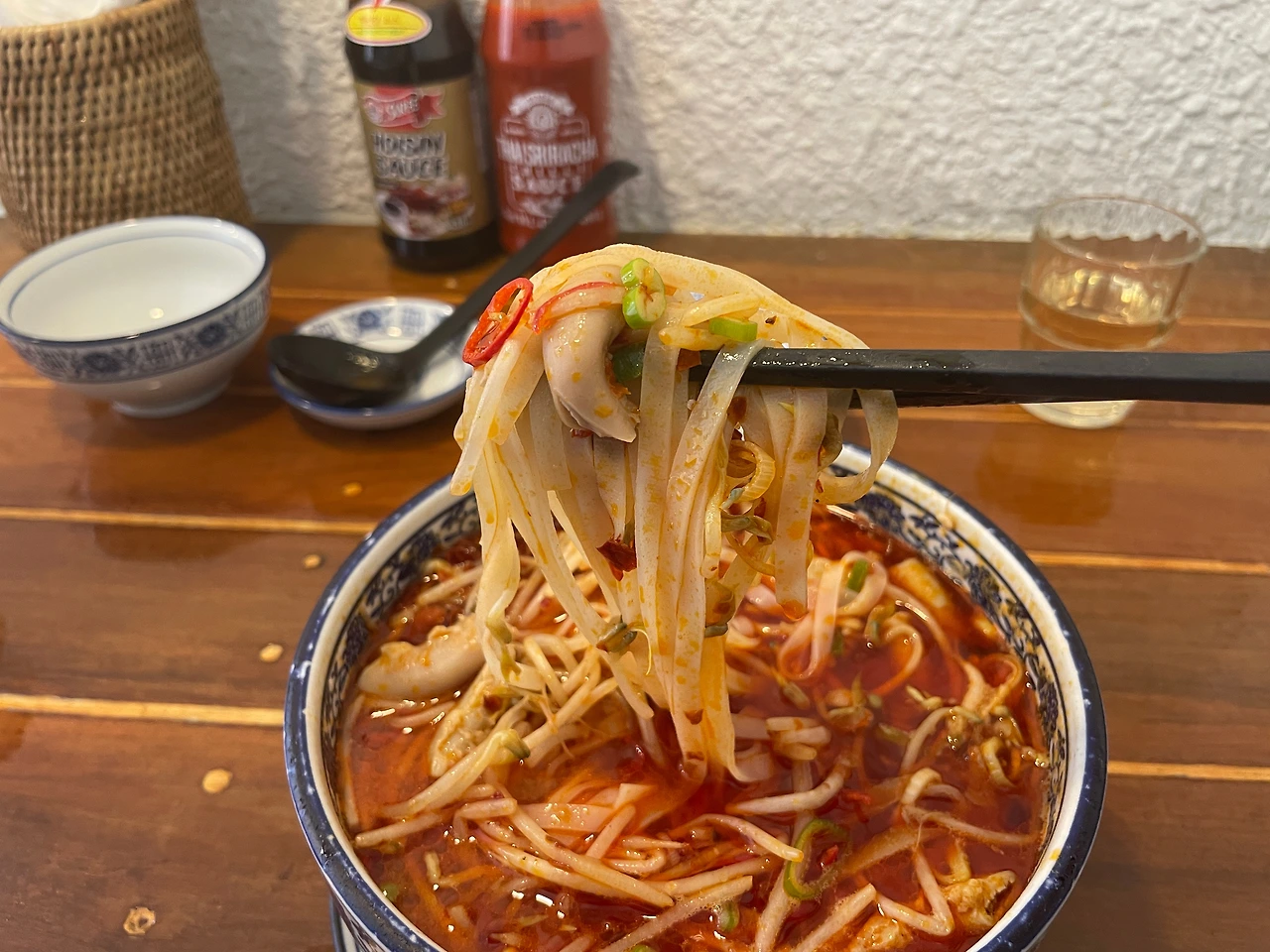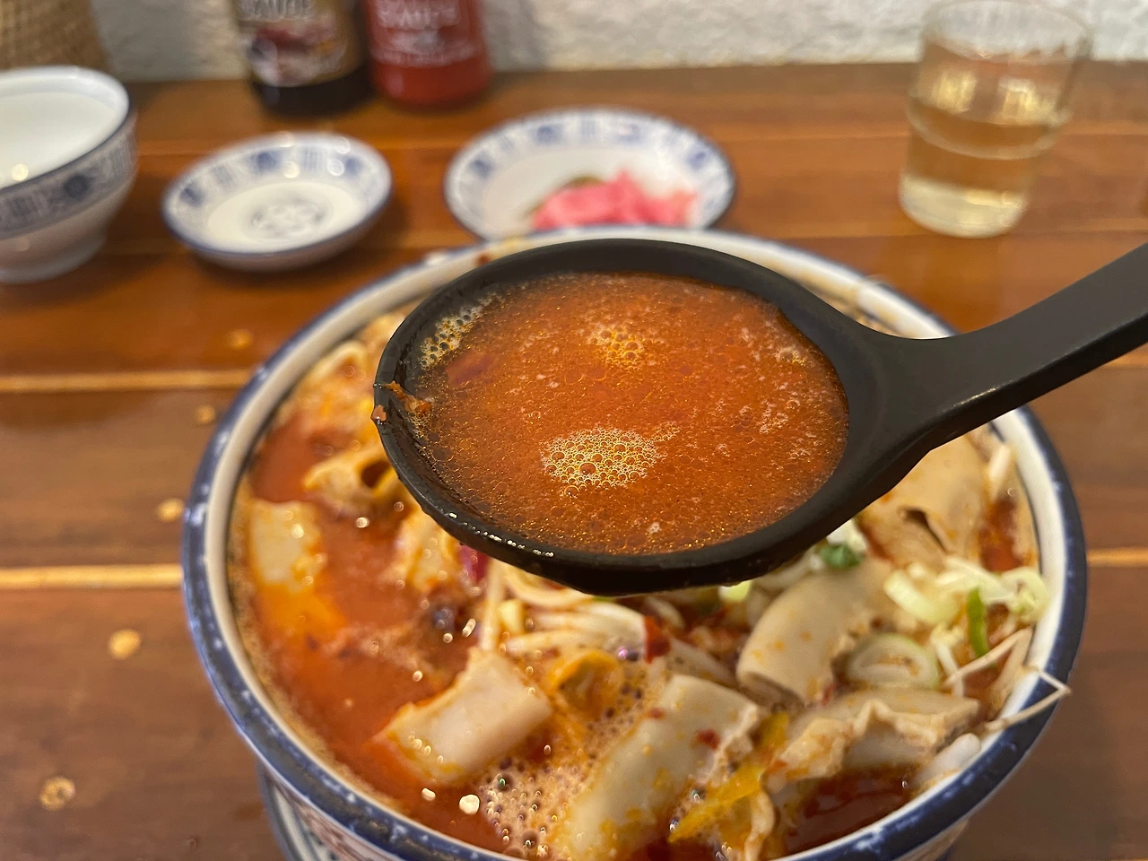 국물은 마라에서 오는 얼얼한 매운맛이 아니라, 고추 자체에서 나오는 깔끔한 매콤함에 가깝다. 국물에 기름기가 많다. 아무래도 곱창이 기름지니 그럴 수밖에.