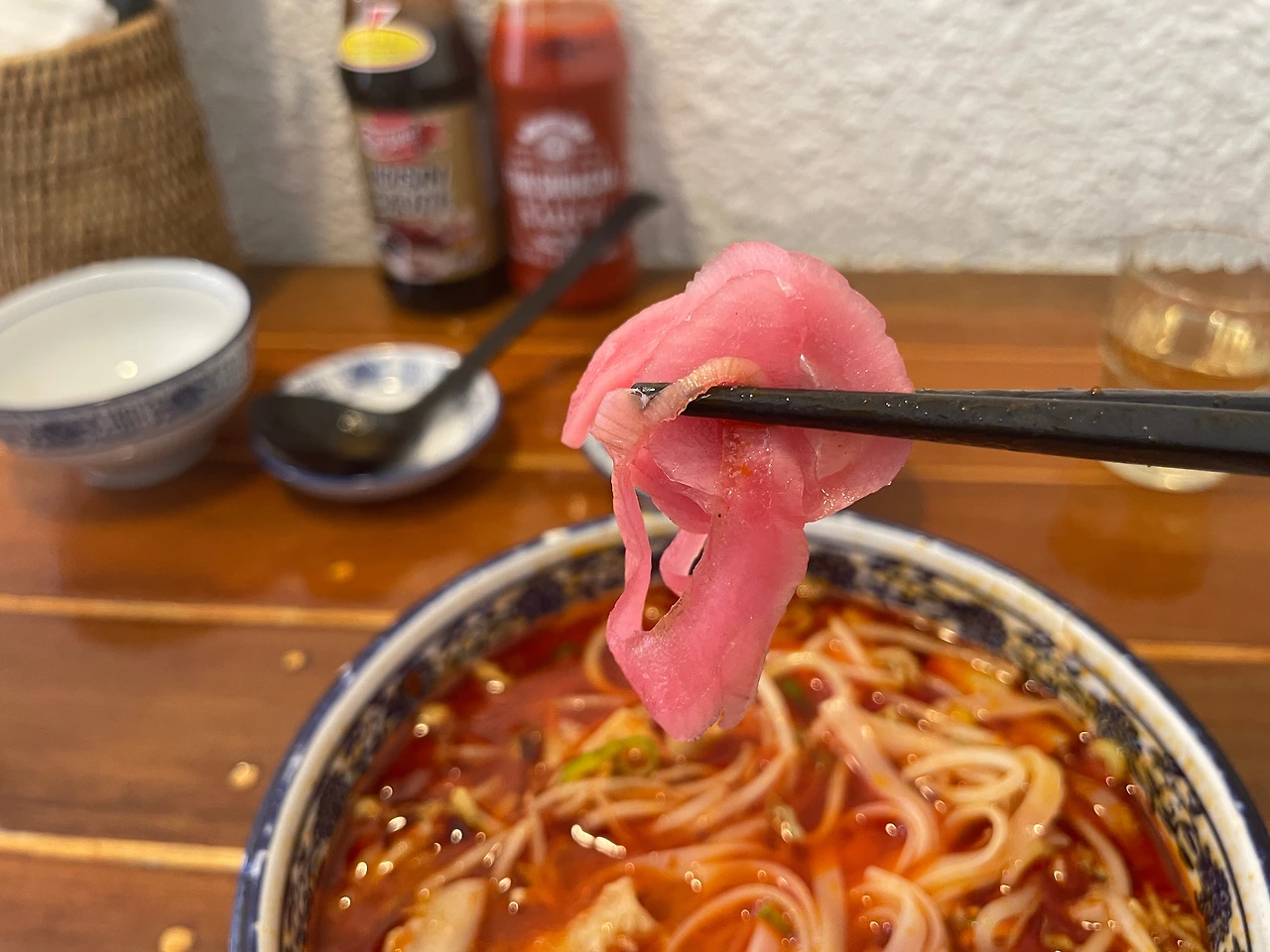 곱창 쌀국수는 맵기를 선택할 수 있는데 아마 0~3단계 정도로 나뉘어 있다. 나는 매운 걸 잘 못 먹어서 1단계를 주문했다. 0단계는 진라면 순한 맛 수준이라서 제외했다. 1단계는 신라면 맵기라니까 가능할 것 같았다. (사실 이것도 좀 떨림)