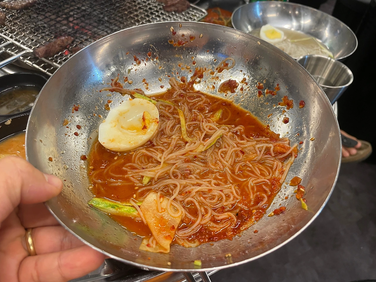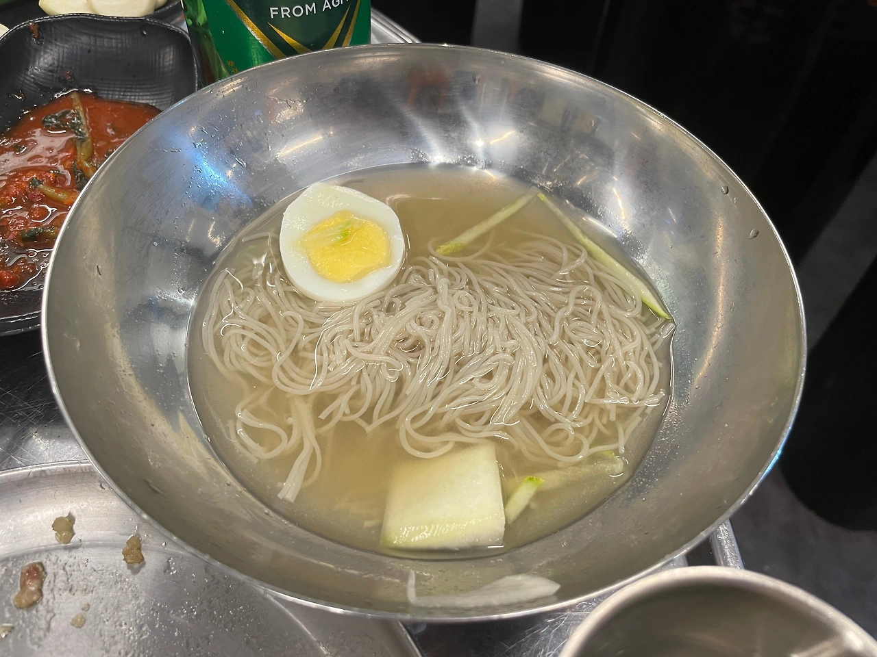 냉면도 시켜서 먹었다. 정신없이 먹느라, 먹다가 시진을 찍었다.