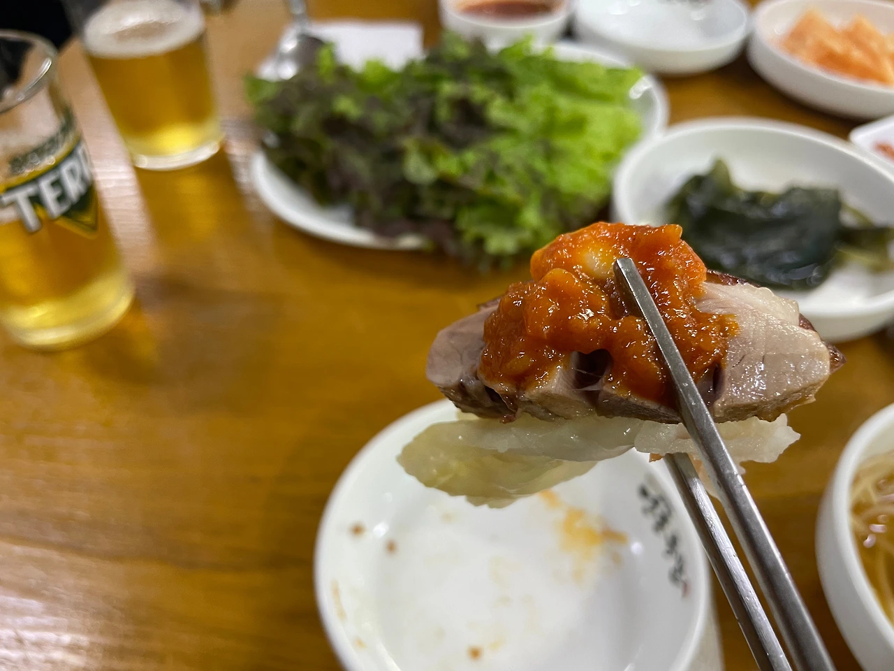 새우젓이 매콤해서, 족발에 찍어먹으니 짭짤하니 맛있다.