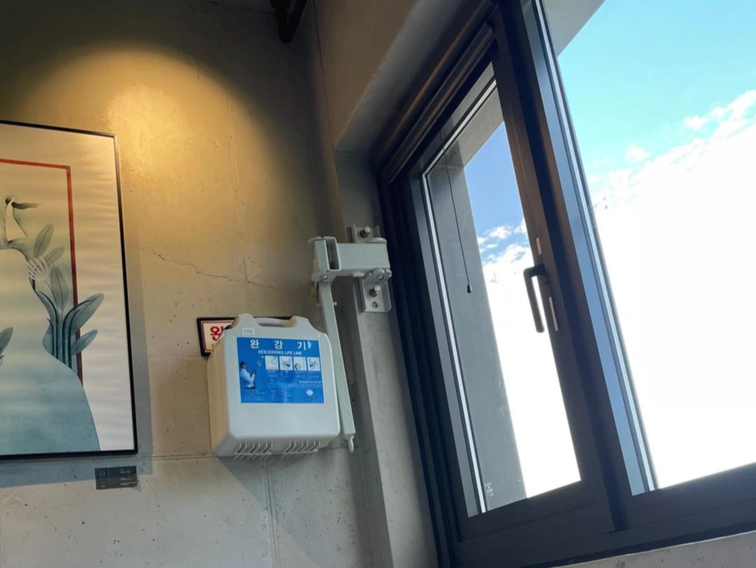 체크인을 하고 카드키를 받아 방으로 올라갔다. 방은 간소하다. 침대,세면대,화장실이 군더더기라곤 찾아볼 수 없는 최적의 공간배치로 놓여있다. 노출콘크리트 마감부터, 솔직하게 배치된 완강기까지. 불필요한 건 단 하나도 없다. 완벽하다.