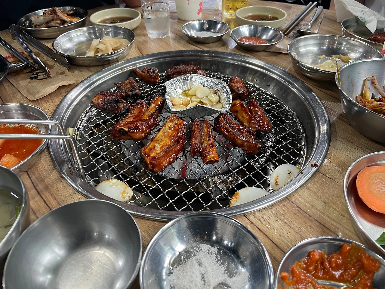 내가 마늘을 그대로 불판 위에 올리자, L은 '아니 그거 마늘기름장 해달라고 하면 되잖아' 하더니 박력 있게 종업원께 부탁했다. 그러니까 가져다주시더라.