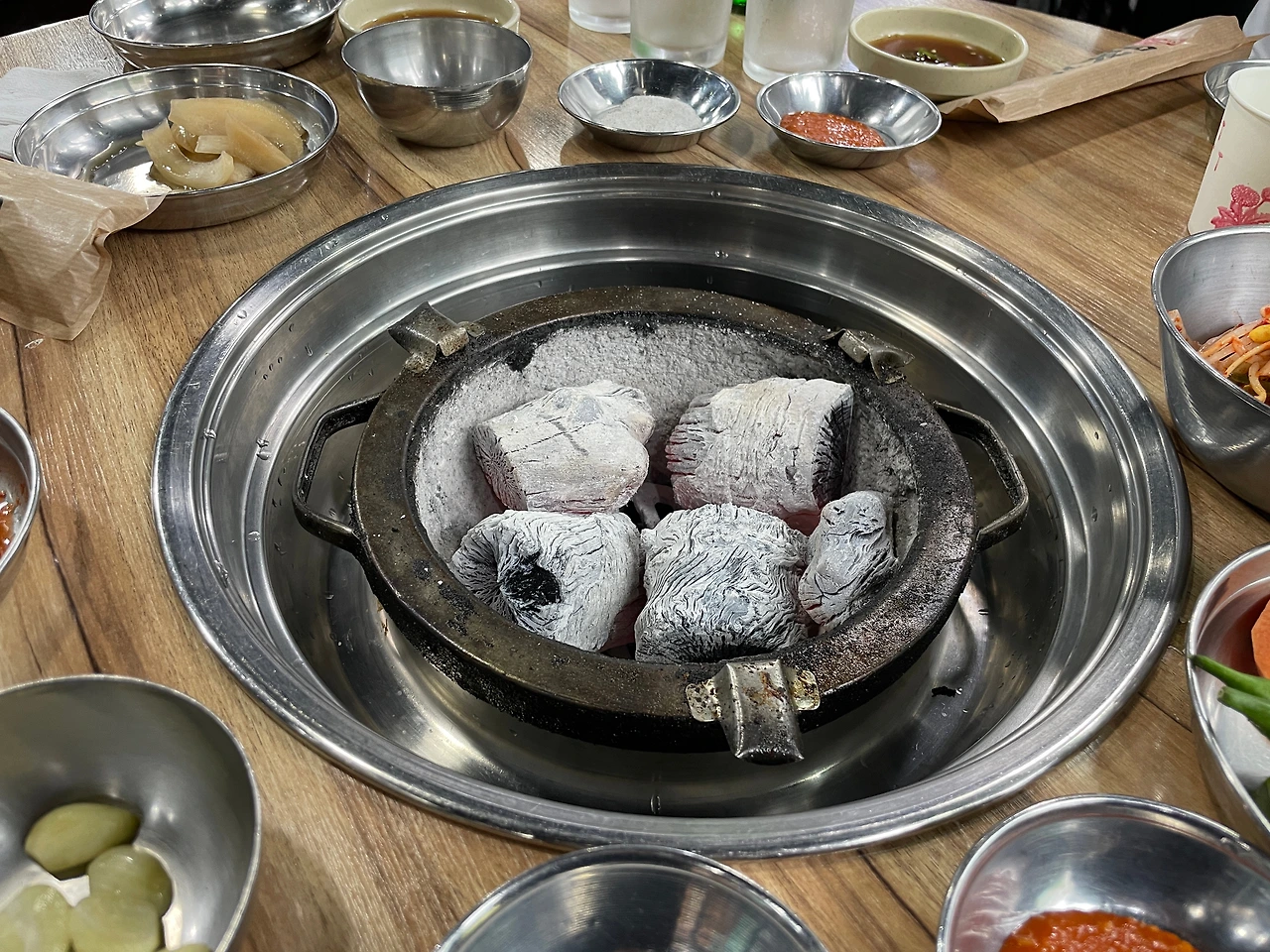 숯이 굵다. 이 한 여름에 숯 피우시는 직원 분, 정말 고생 많으십니다. 덕분에 맛있게 잘 먹겠습니다.