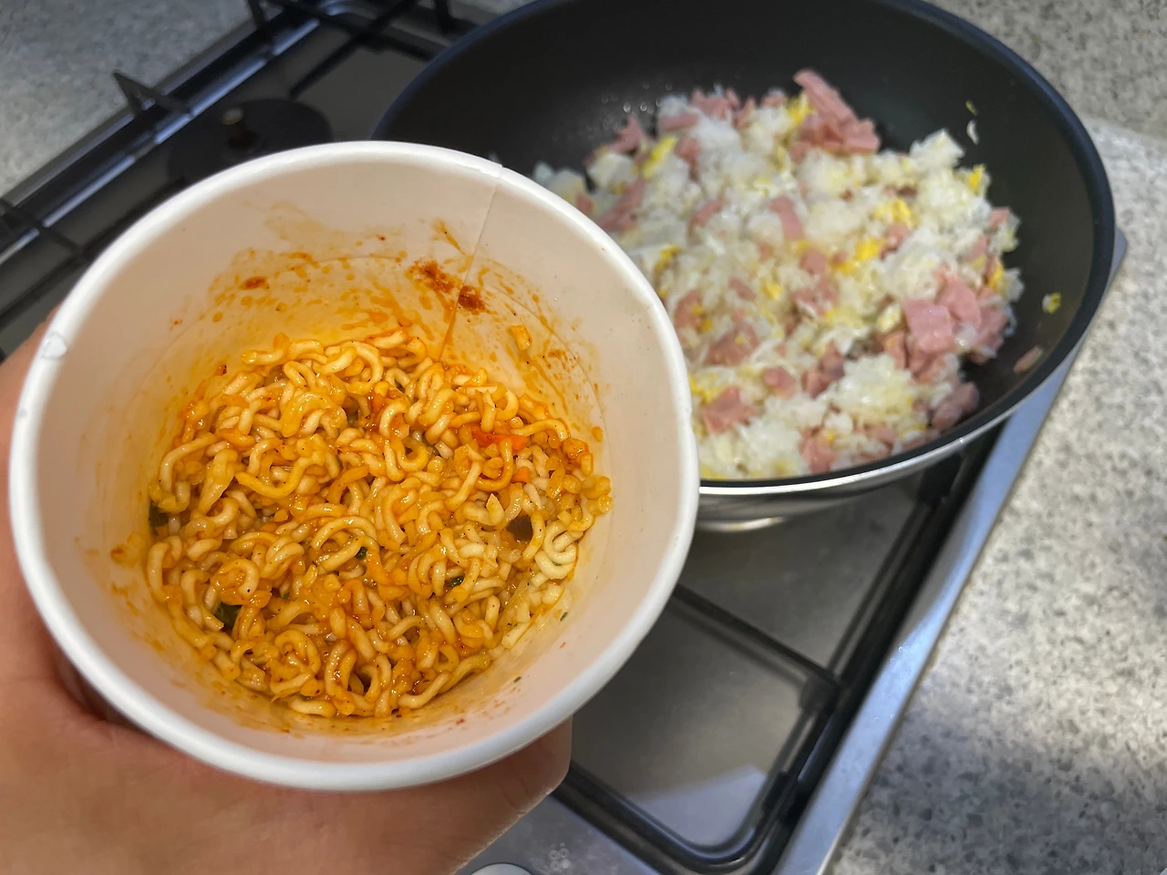 향이 좋다. 이대로 먹어도 맛있겠는데? 하지만 오늘의 목표는 라면볶음밥이니 끝까지 가보자.