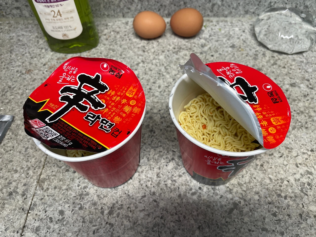 근데 이거 쌀밥에 라면에 스팸에 탄수화물만 잔뜩이라 영양학적으론 좋지 않겠다. 아들, 이거 먹었다고 엄마한테는 말하지 말아 주라. 우리 둘만의 비밀로 하자.
