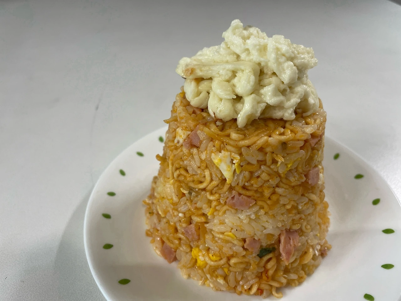 빈 라면 용기를 사용해서 플레이팅 했다. 위에는 녹인 치즈를 얹었다. 비벼서 먹으라고. 기왕이면 예쁜 게 좋으니까. 보기 좋은 떡이 먹기도 좋다고 하잖는가.