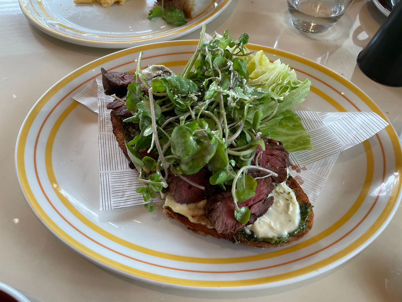 그냥 대충 고기 구이가 아니라, 진짜 제대로 구운 스테이크가 빵 위에 올라가 있다.