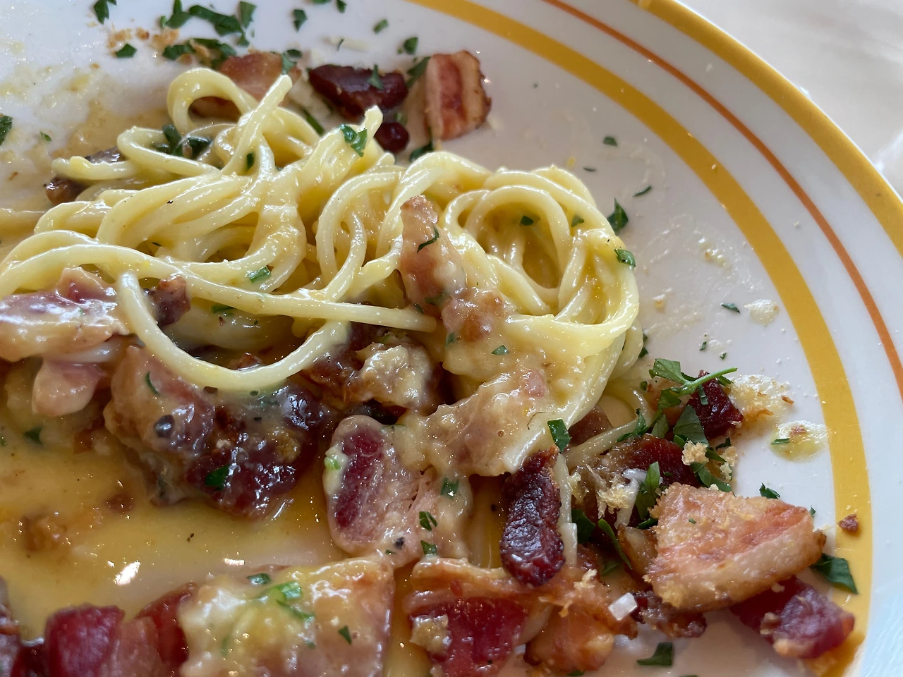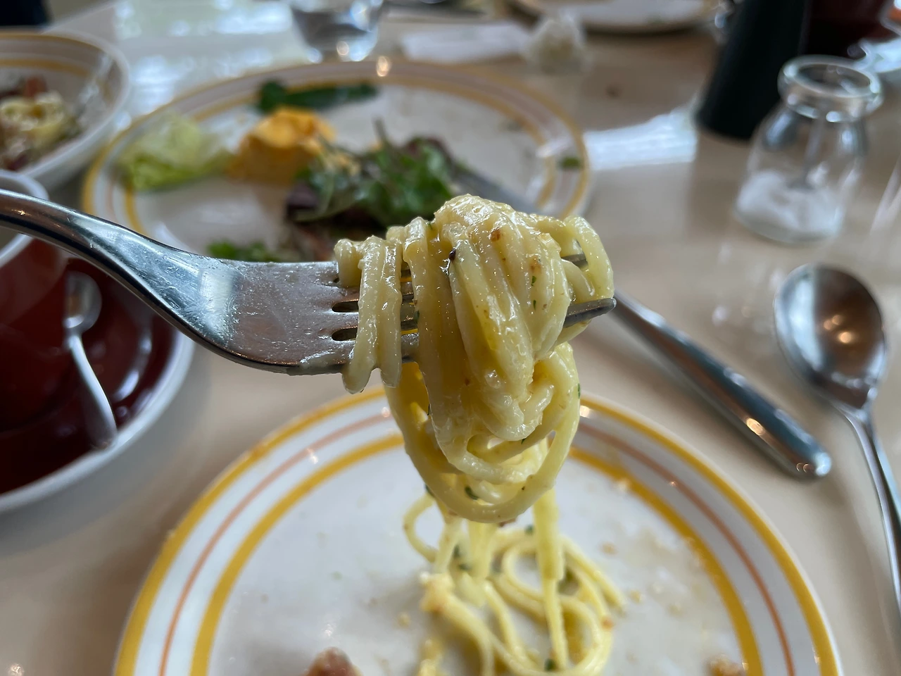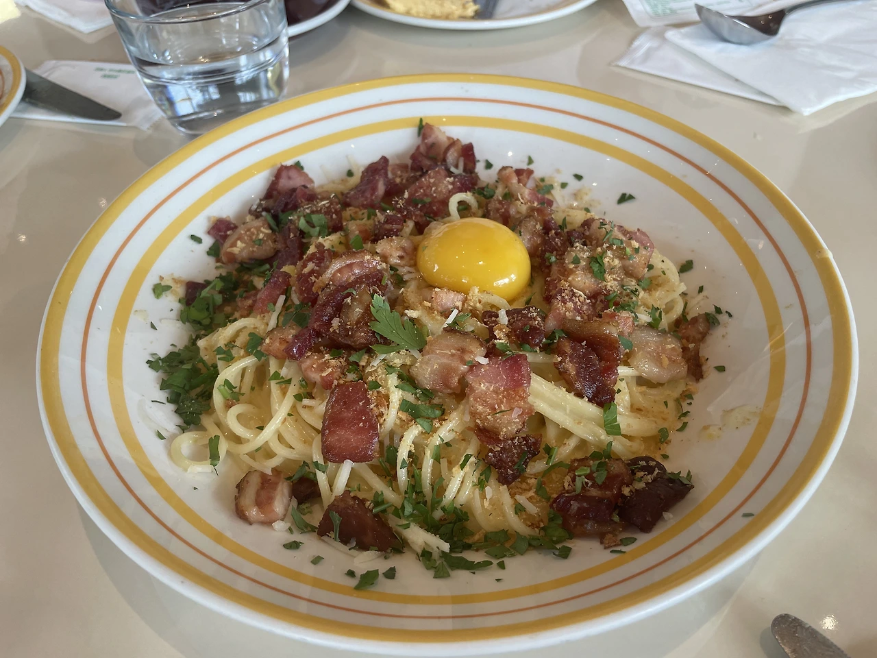 달걀노른자에 코팅된 면이 짭짤하면서 고소하다.