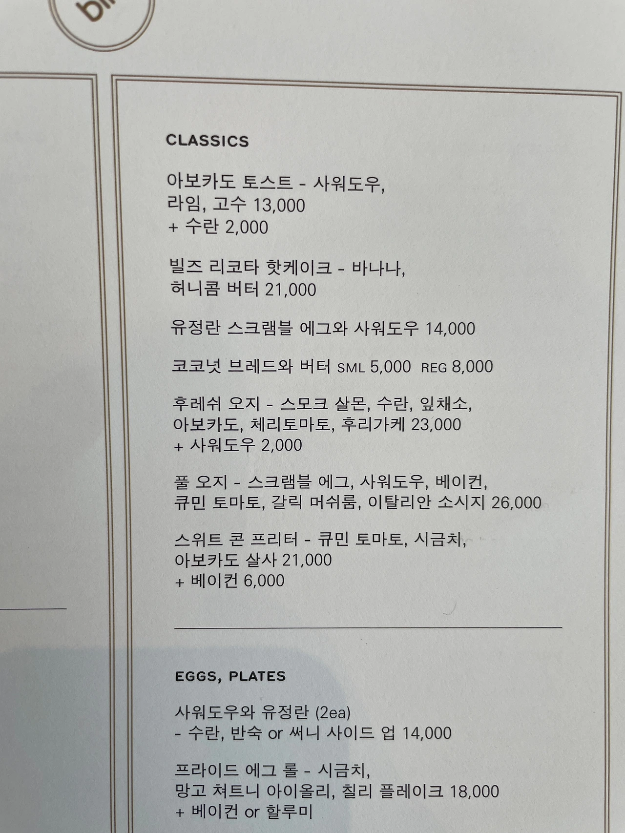 친구 가족과 오랜만에 만나 브런치를 먹기로 했다. 방문할 곳은 ‘bills’