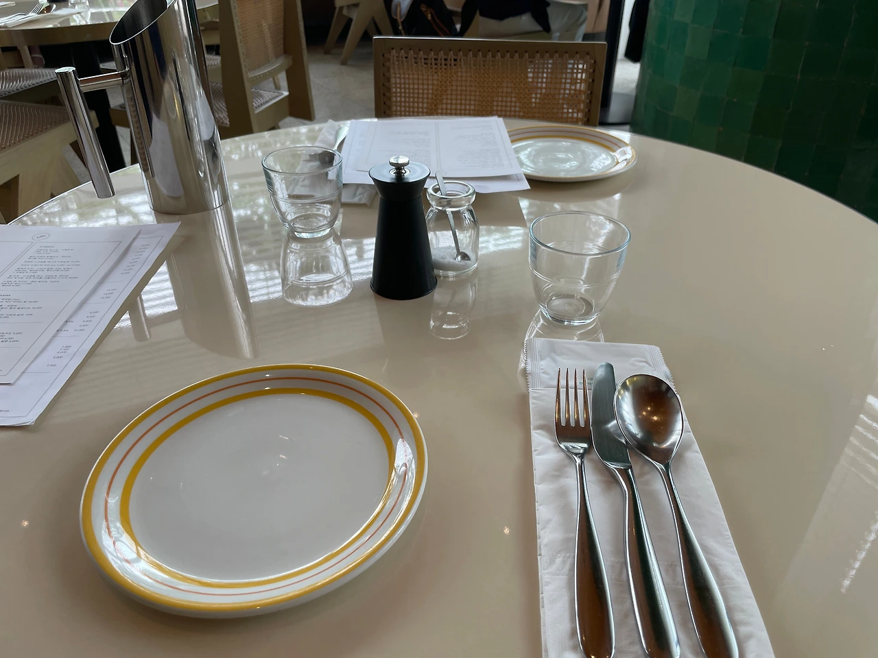 테이블 식기가 정갈하다. 그릇이 귀엽네.