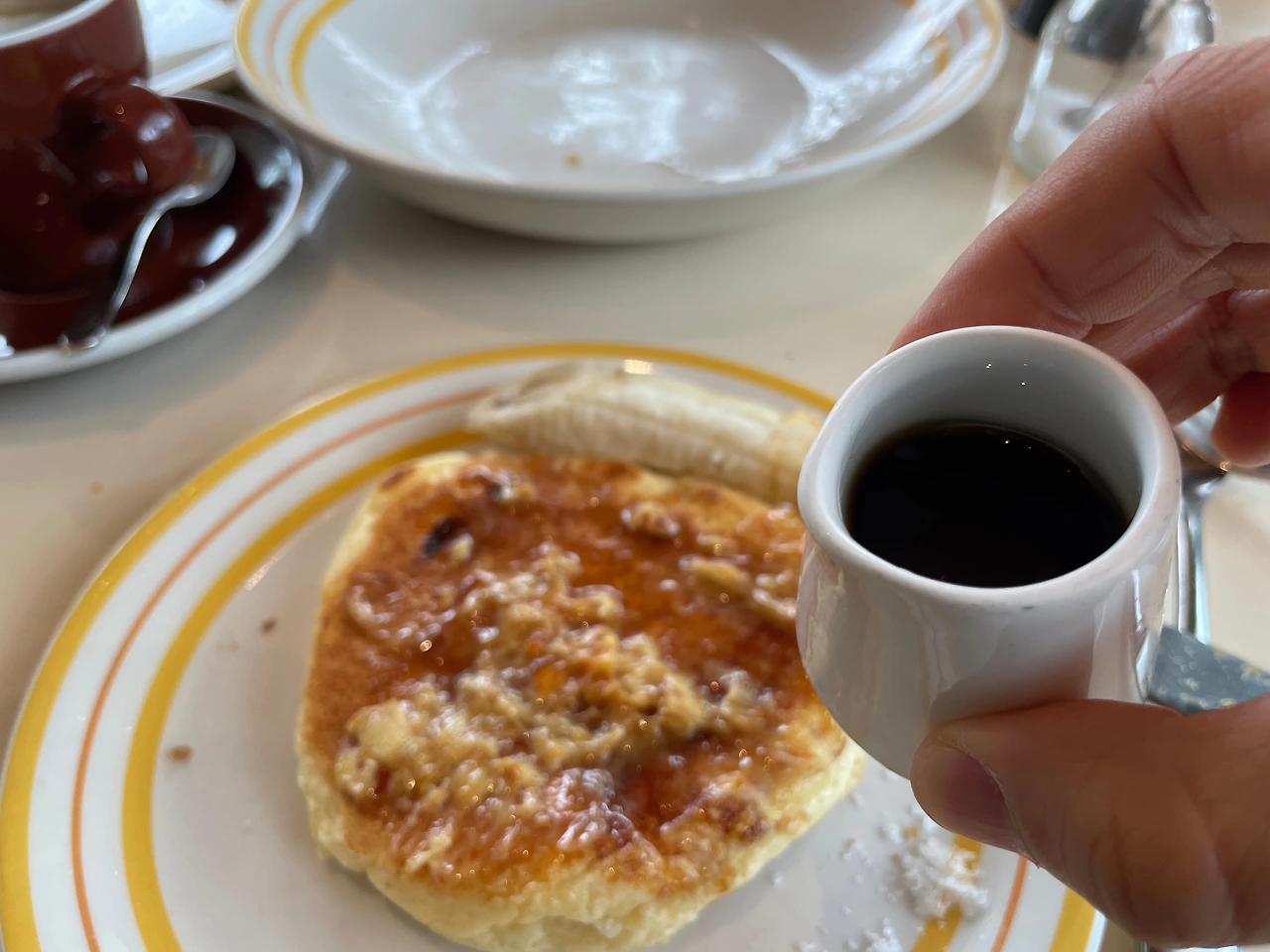 나는 팬케잌을 좋아한다. 미국에서도 일부러 팬케잌을 먹으러 갔었다. 근데 미국에서 먹었던 팬케잌보다 여기 팬케잌이 훨씬 맛있다. (물론 가격도 훠어얼씬…) 맨날 맥도널드 팬케잌만 먹다가 이런 걸 맛보니 세상이 달라 보인다. 이래서 사람은 경험해야 한다. 경험이 가장 중요하다.
