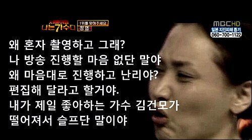 "내가 방송 못하겠는데 왜 진행하고 난리야! 편집해 달라고 할 거야 난 이렇게는 못해." (?? 갑자기 무슨??)