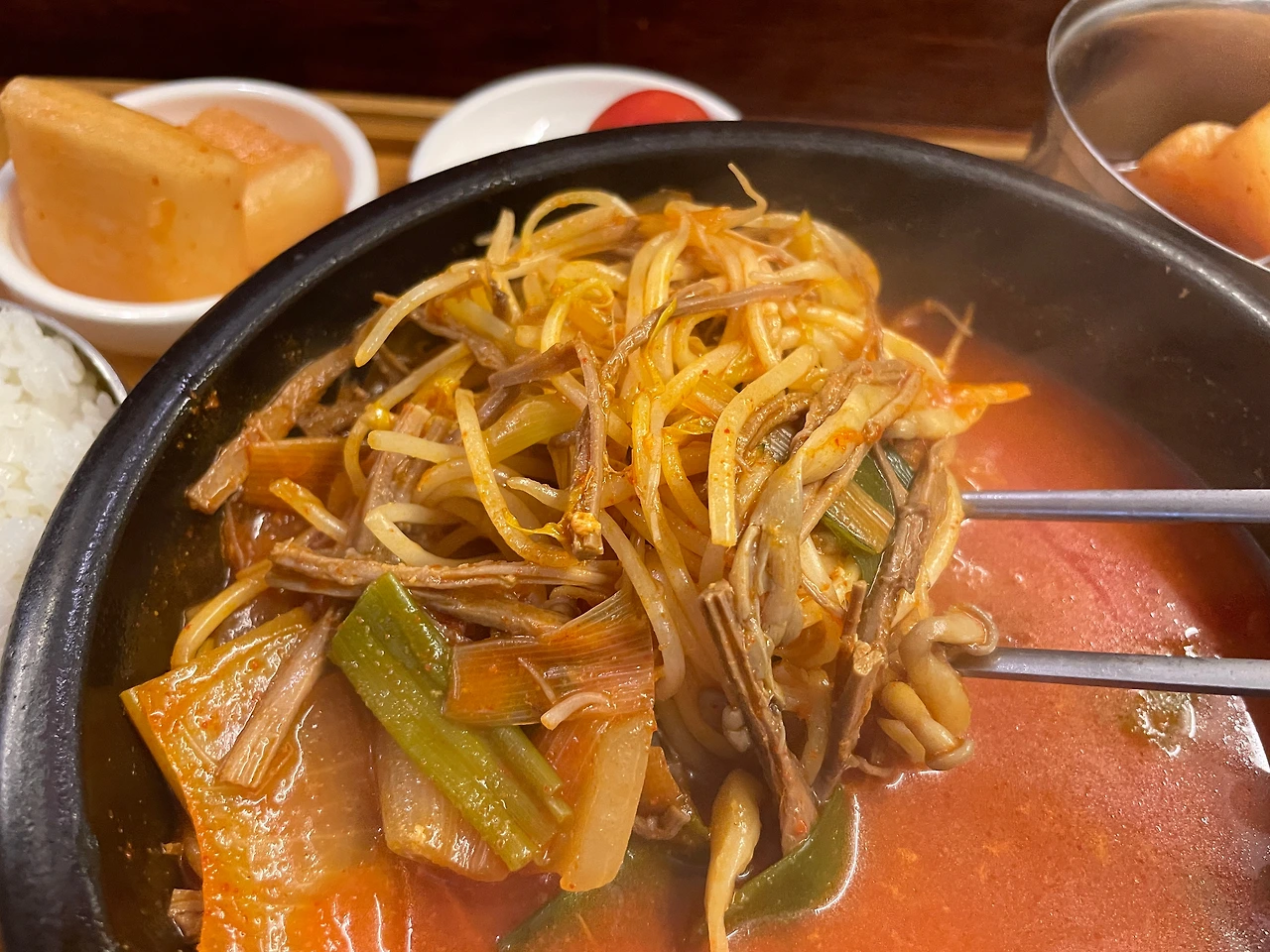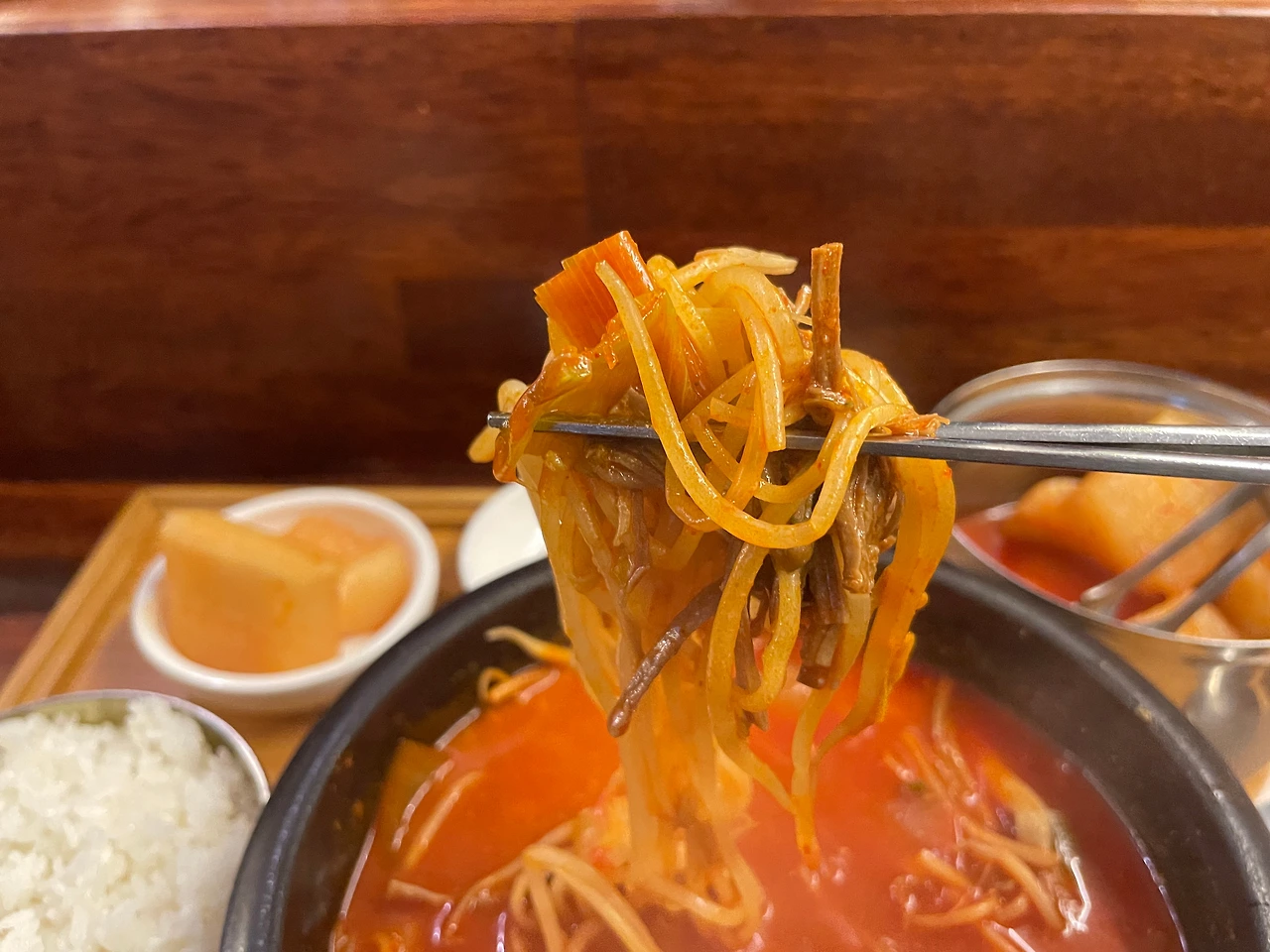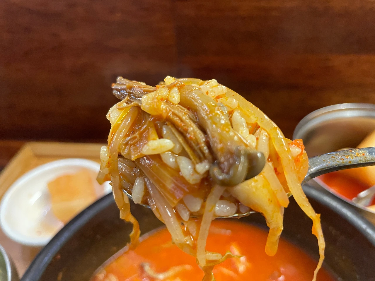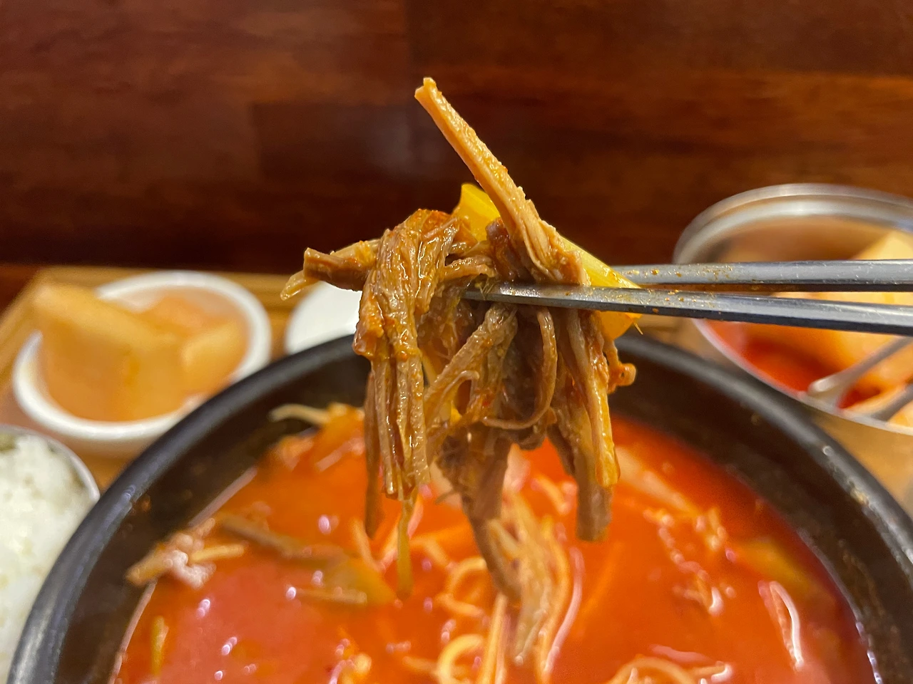 잘 익은 소고기가 듬뿍이다. 입 안에 넣으니 부드럽게 살살 녹는다. 육개장 국물이 잘 배어있다.