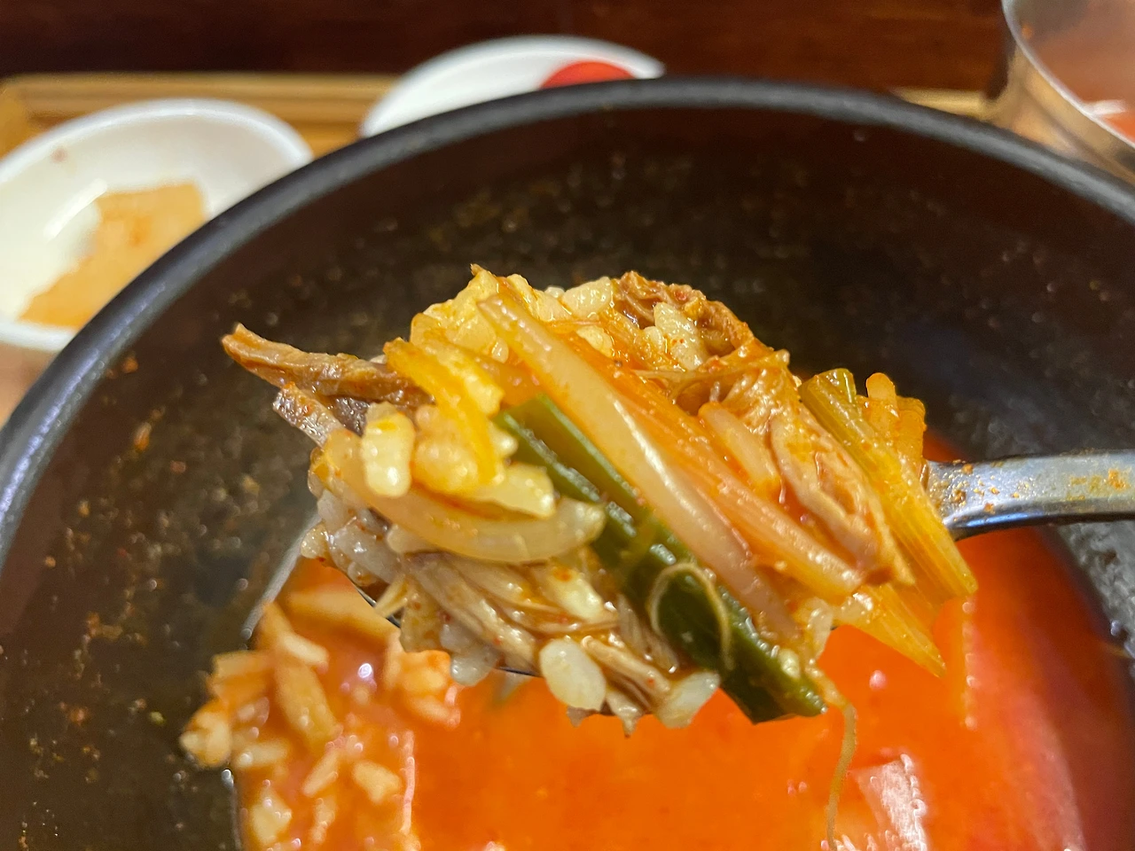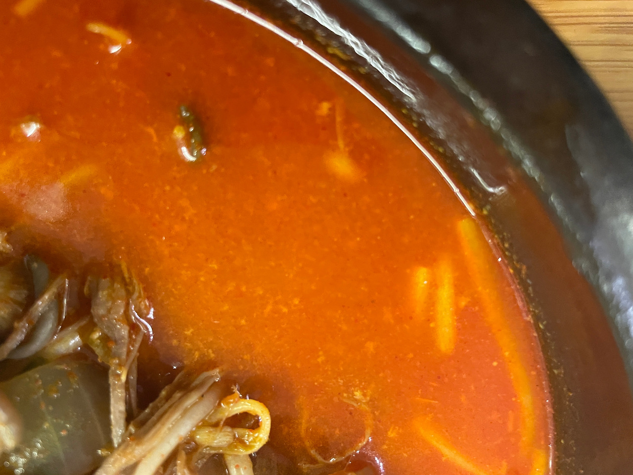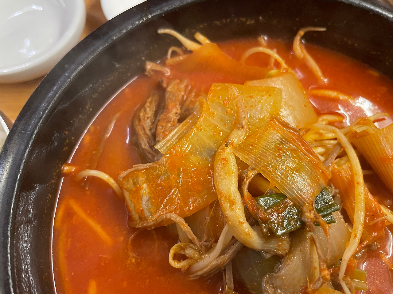 잘 익은 소고기가 듬뿍이다. 입 안에 넣으니 부드럽게 살살 녹는다. 육개장 국물이 잘 배어있다.