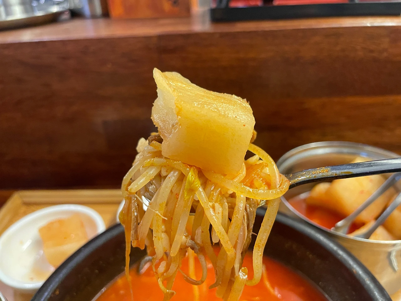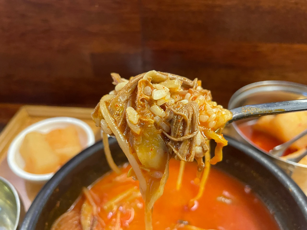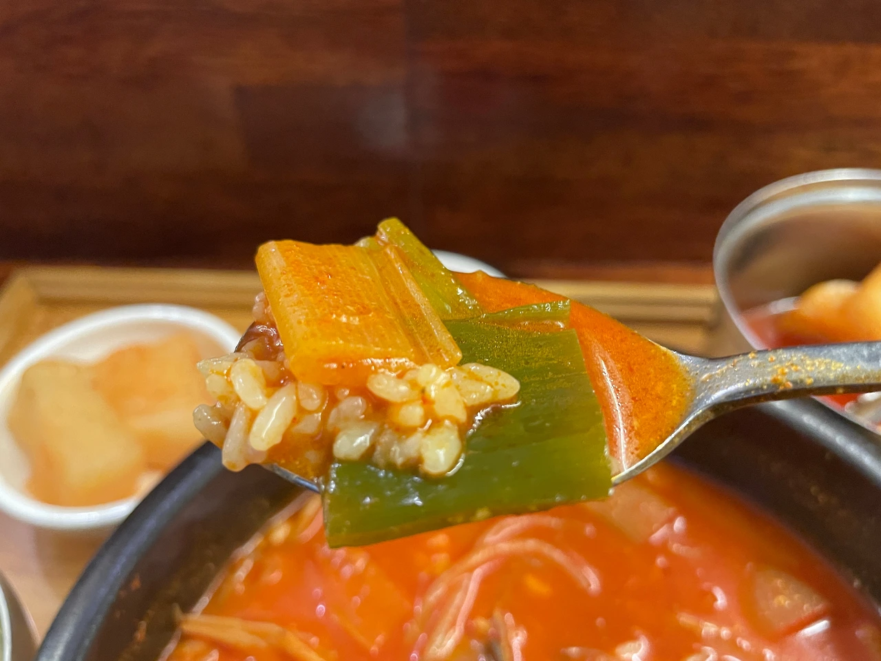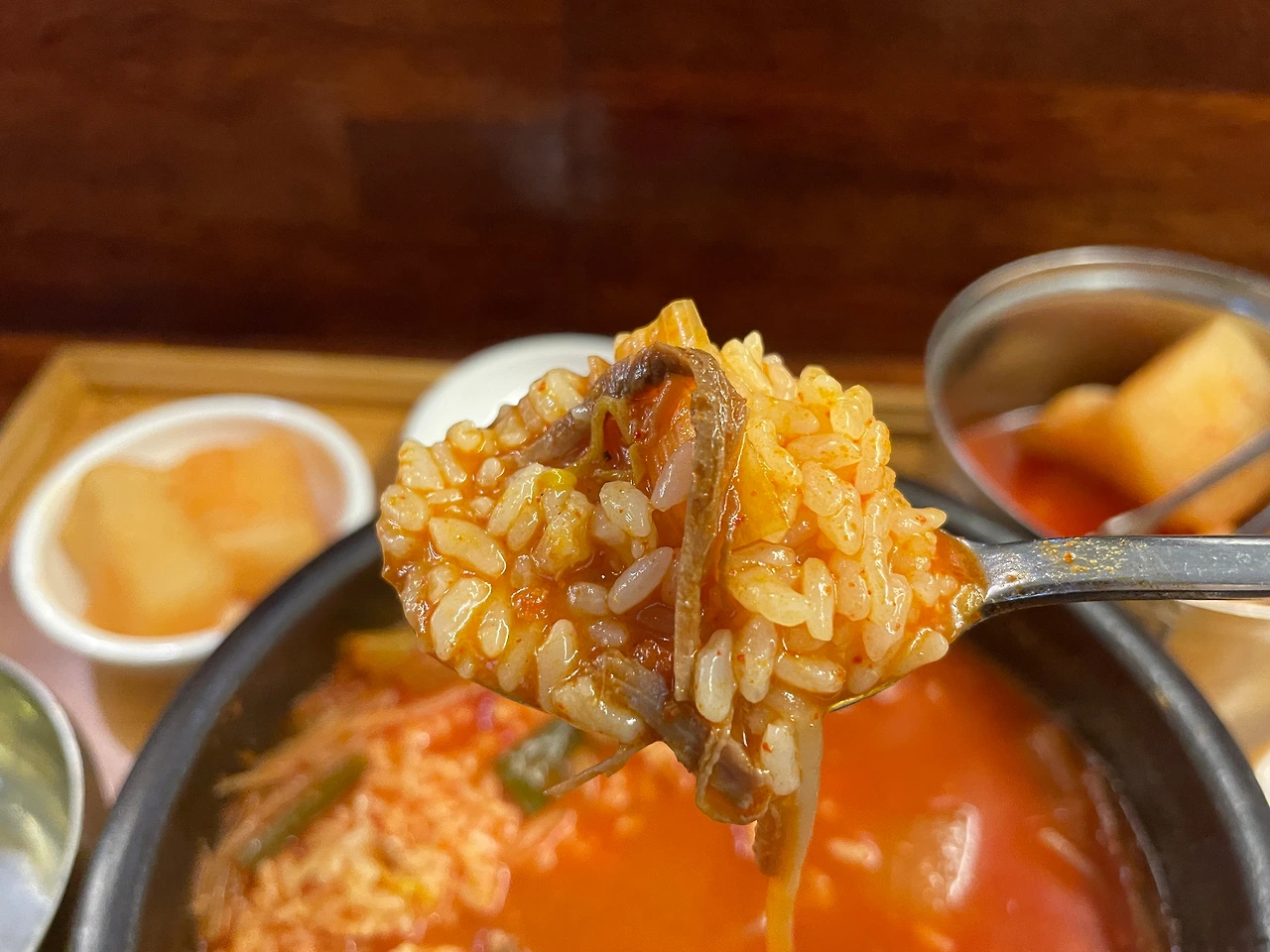 잘 익은 소고기가 듬뿍이다. 입 안에 넣으니 부드럽게 살살 녹는다. 육개장 국물이 잘 배어있다.