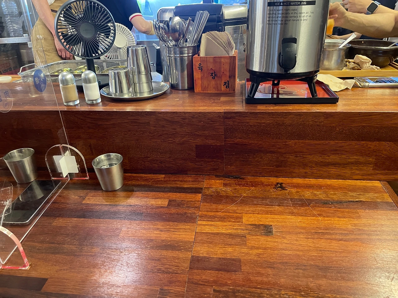 30분 정도 기다렸다가 입장했다. 가게 안은 단출하다. 사진에 보이는 좌석이 전부다. 나처럼 혼밥을 즐기는 사람에겐 이런 바 형식이 좋다.