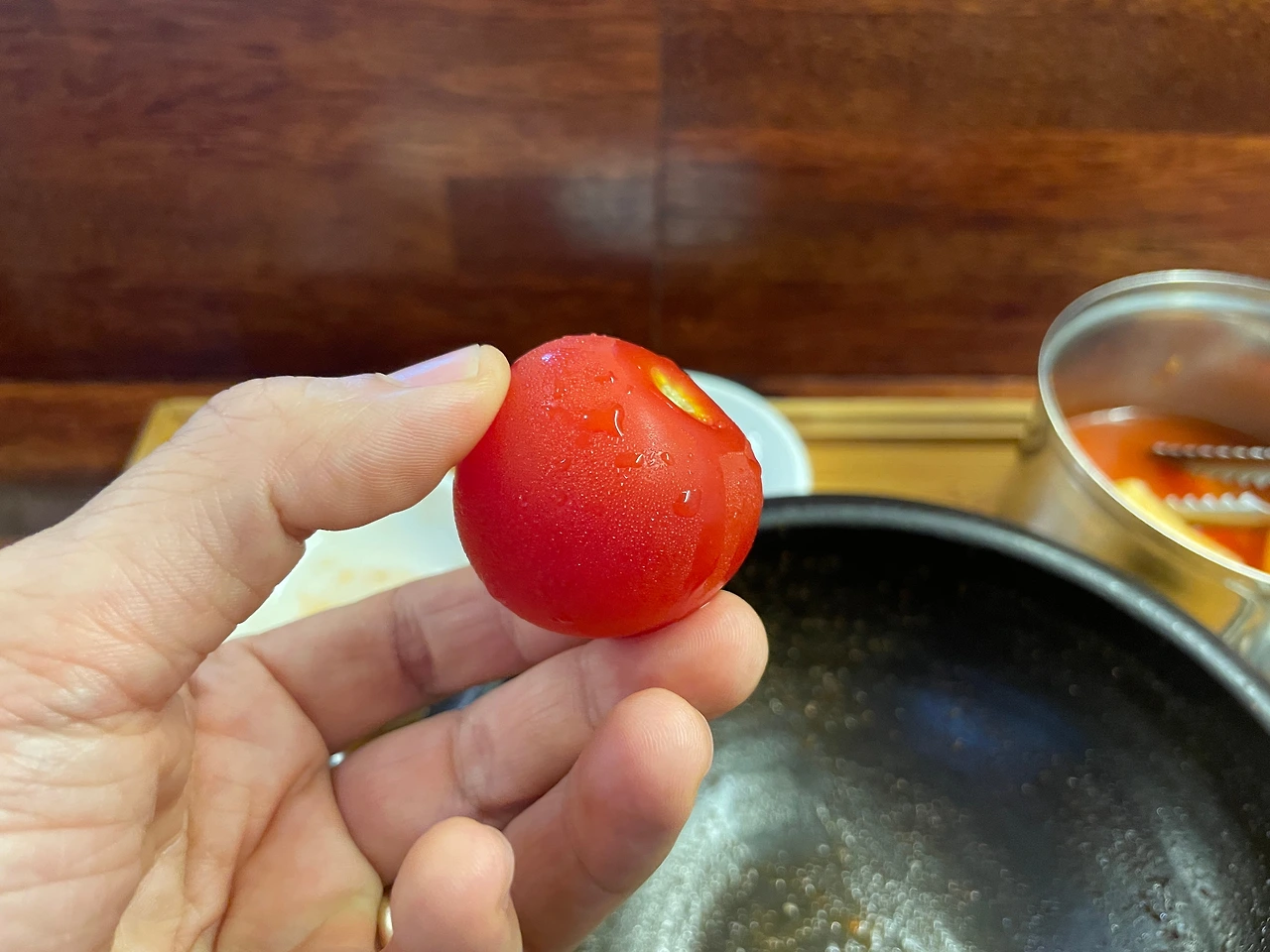후식으로 주신 토마토로 입가심을 한다. 새콤하고 시원하다.
