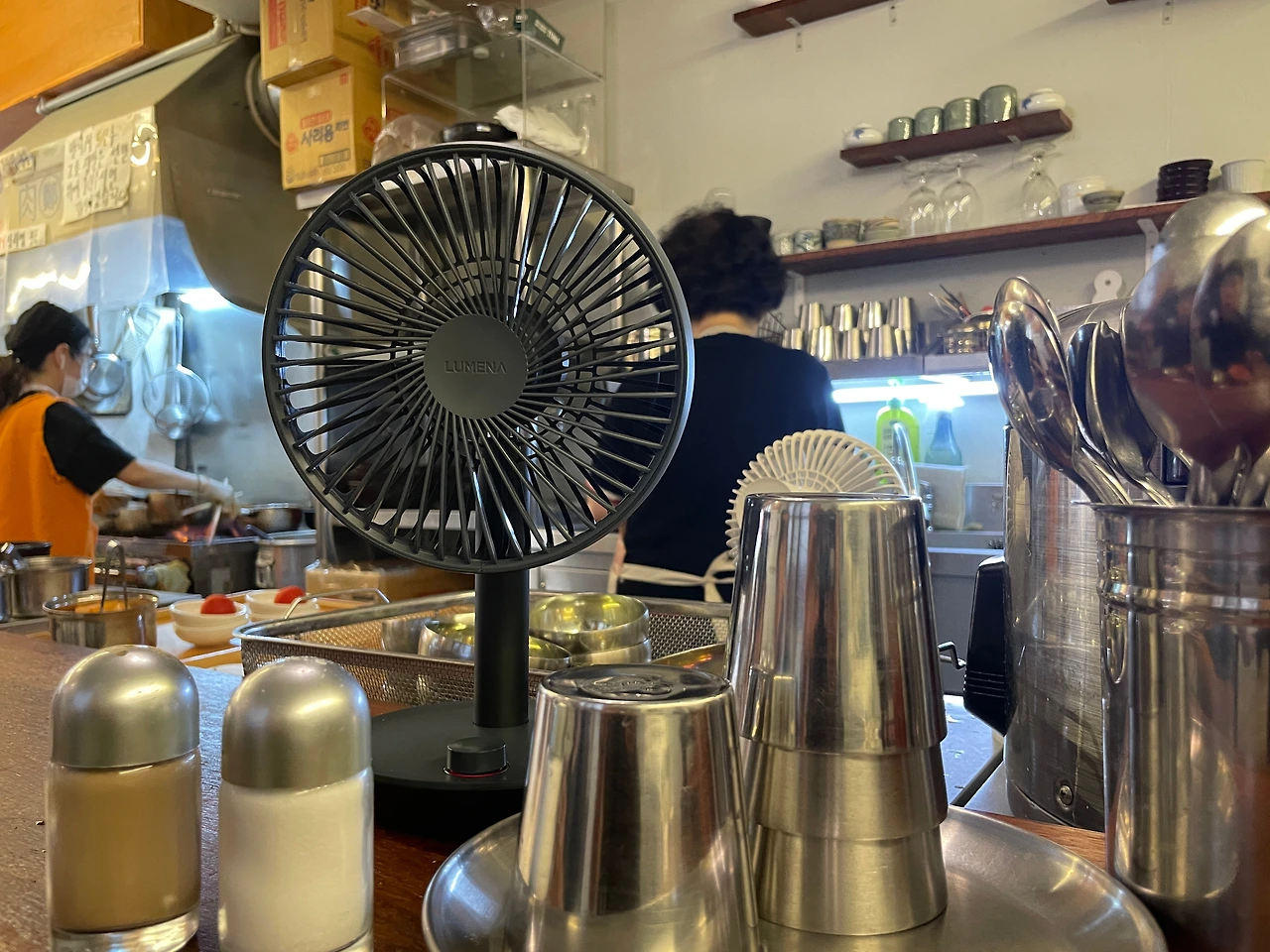 열심히 뜨거운 국물을 먹었더니 덥다. 땀이 난다. 앞에 있는 선풍기가 고맙다.