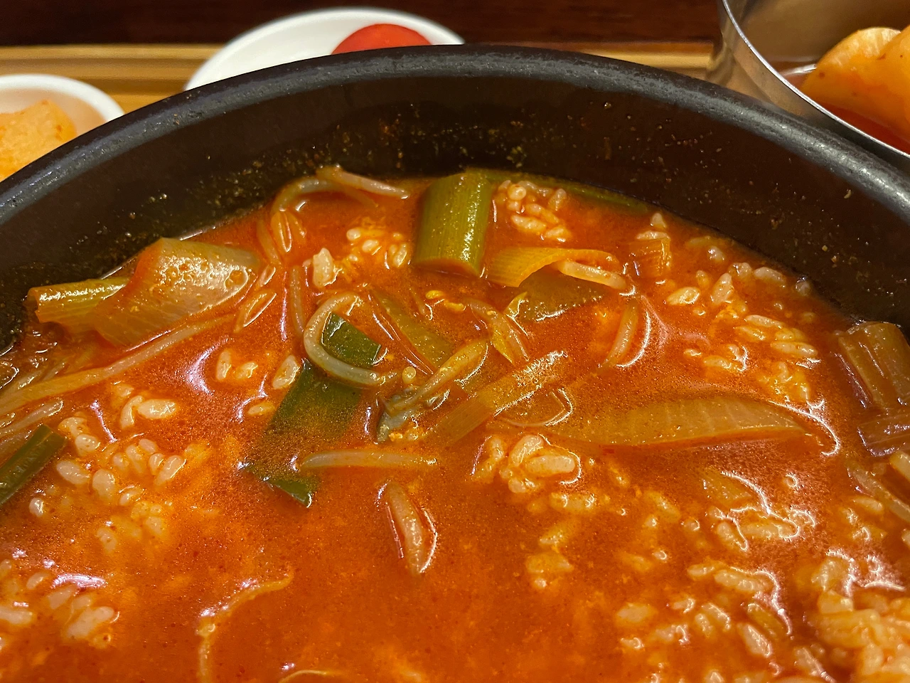 뚝배기에 가득 담긴 국밥의 모양새가 좋다. 아름답다. 매콤한 향이 코끝을 스친다.