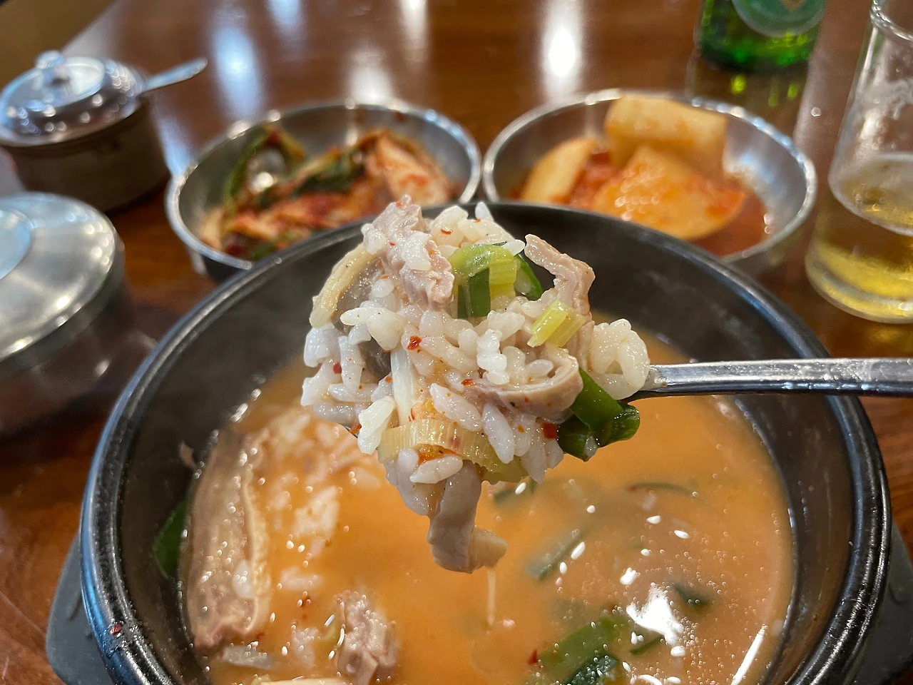 이렇게 더운 날, 술 한잔과 국밥이 주는 친구 같은 일상의 기쁨. 이게 바로 보약이지 뭐. 행복은 멀리 있는 게 아니다.