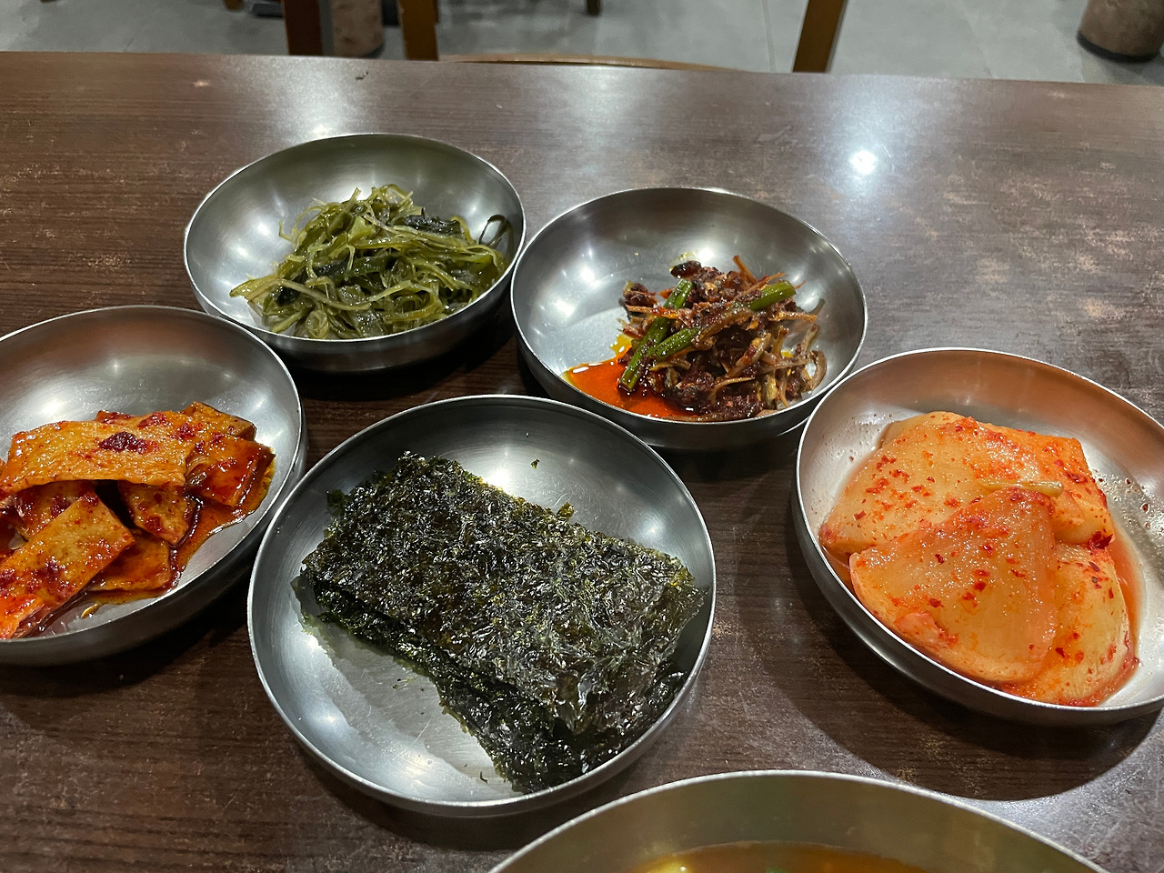 먼저 밑반찬부터 소개해보자. 깍두기, 멸치볶음, 미역줄기볶음, 오뎅볶음, 김까지. 참 알찬 구성이다. 이 정도면 백반집이라고 불러도 부족함이 없겠다.