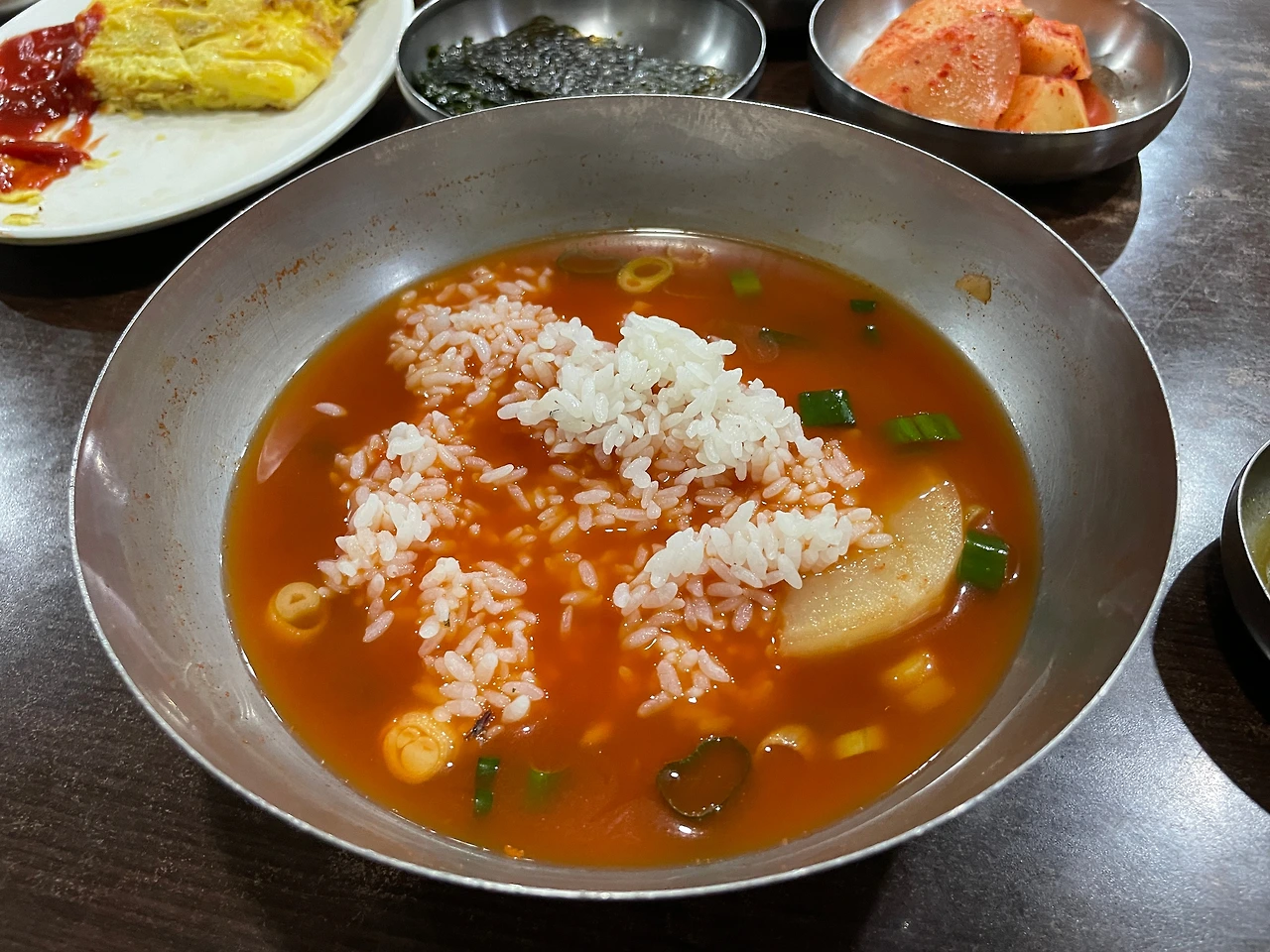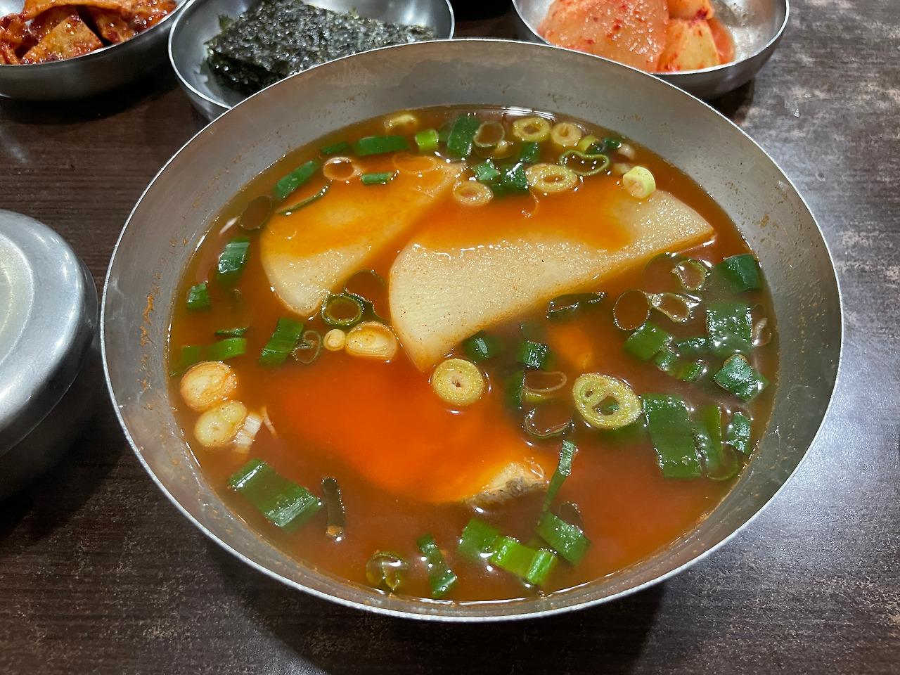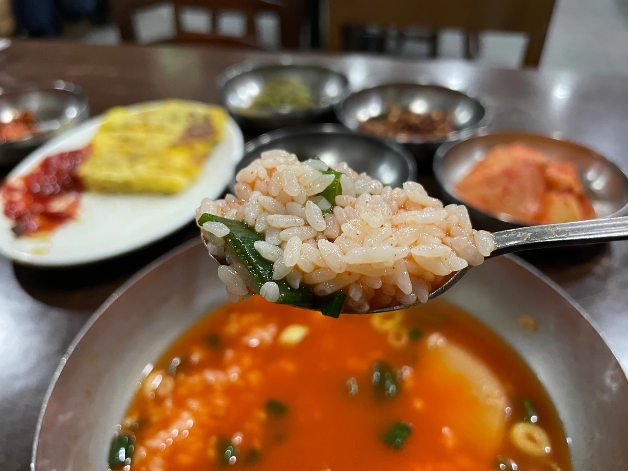 국물이 붉다. 하, 이 국물이 대체 뭐길래. 나는 세 번이나 여길 찾아온 걸까. 한 입 떠먹어보니, 특유의 칼칼한 맛이 뜨끈하게 휘몰아친다. 그래, 바로 이거지. ‘시원~~~하구만’
