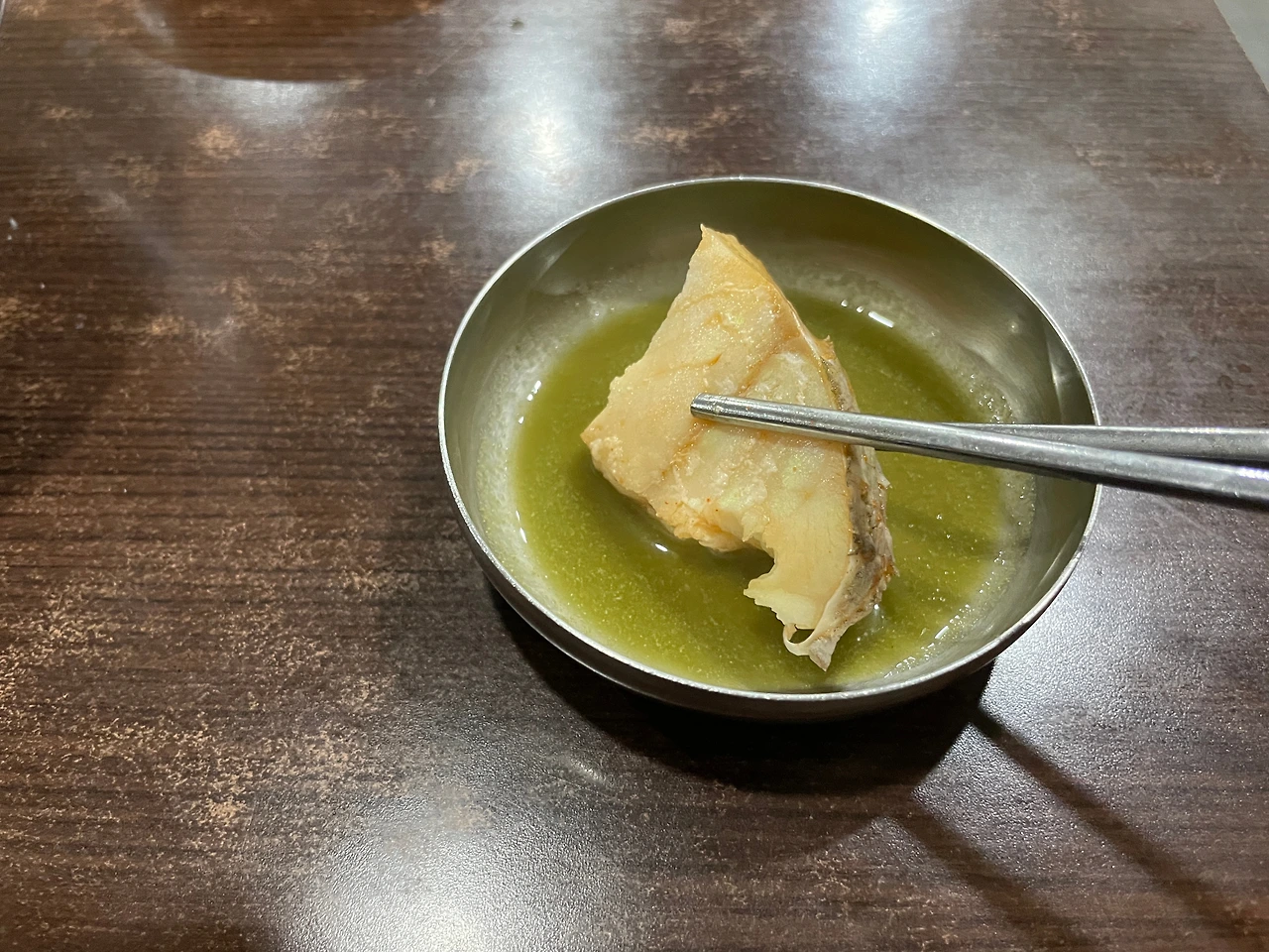 와사비 소스에 찍어서 먹는다. 냉동이 원래 그런 건지 뻣뻣하다. 원래부터 이랬다. 질긴 생선살의 매력. 씹는 맛이 매력적이다. 소스의 와사비 향이 코끝을 찌른다.