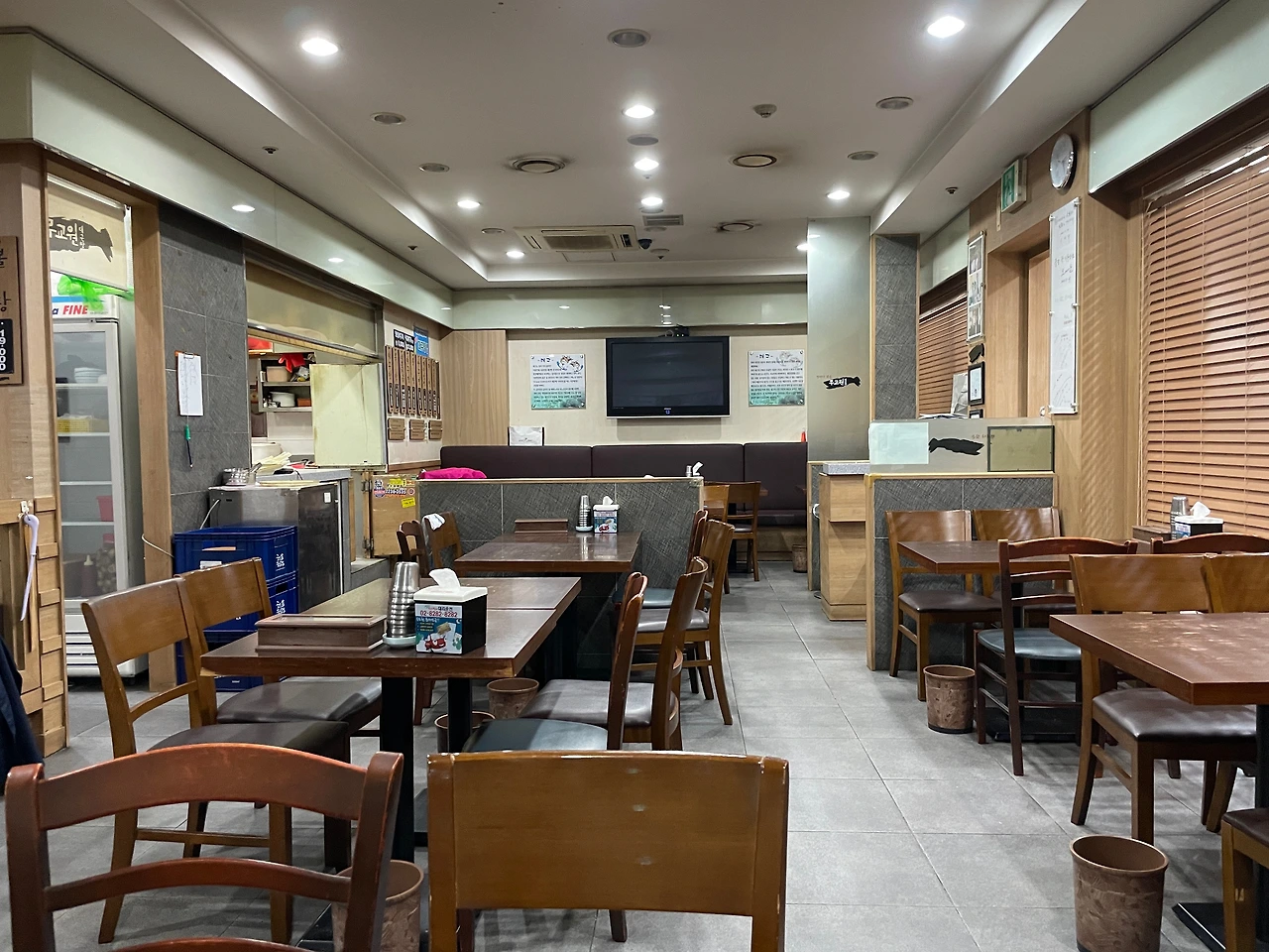 실내는 많이 넓진 않지만, 적당하다. 조명을 반 만 켜놓아서 그런지 좀 어둡다. 블라인드도 다 내려놓으셔서 더 그런 듯.