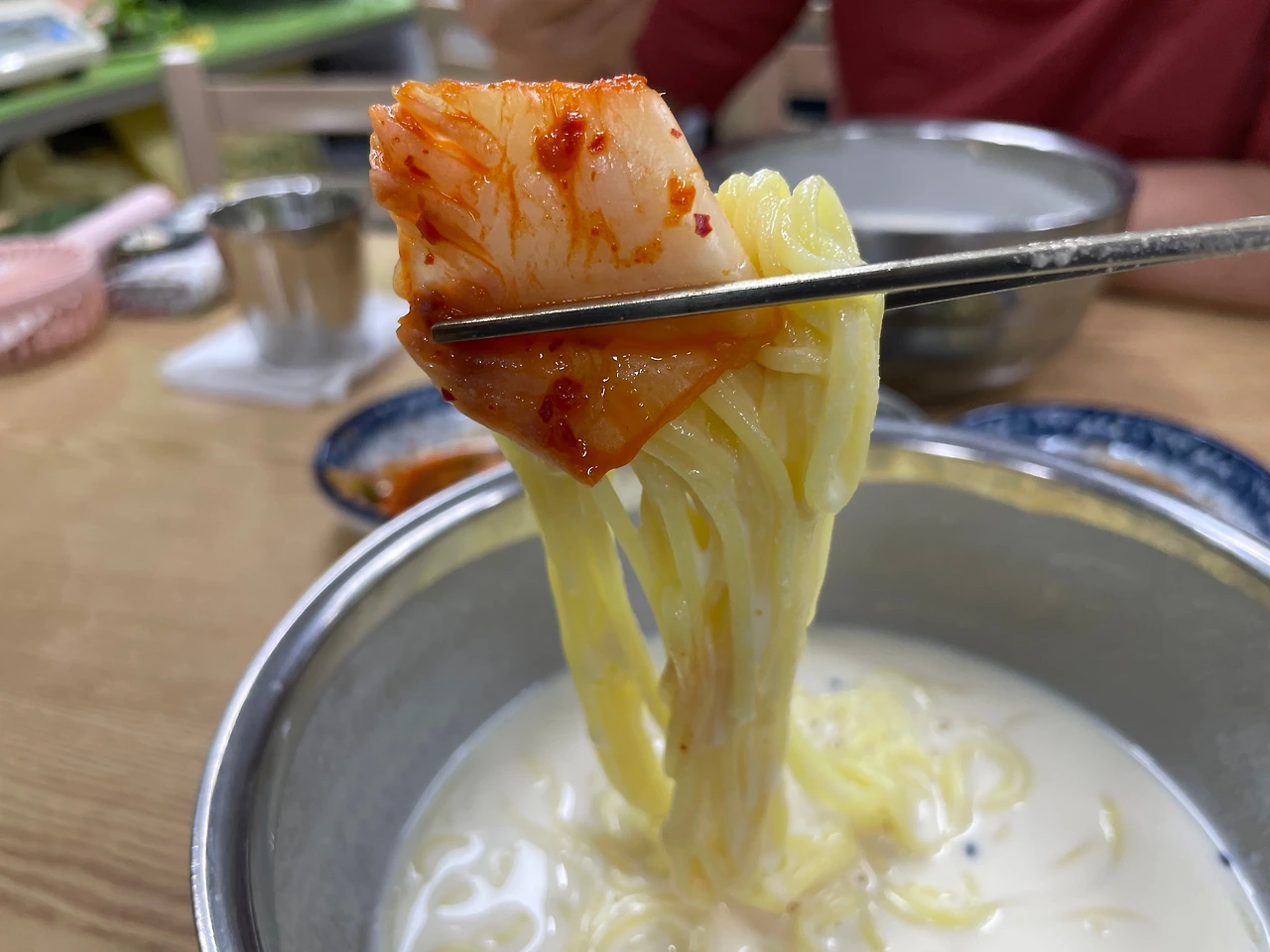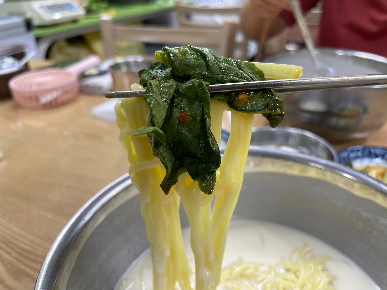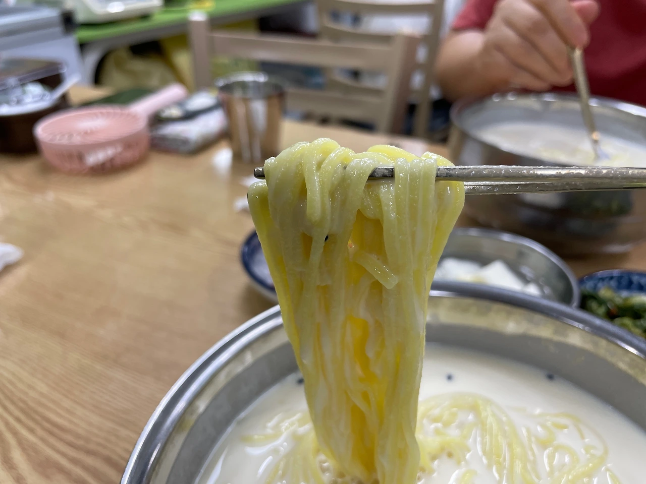 또 한 입 후루룩. 콩국물이 면에 코팅되어 고소함이 배가된다.