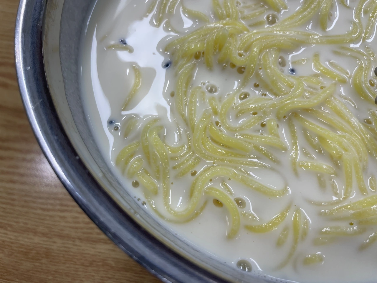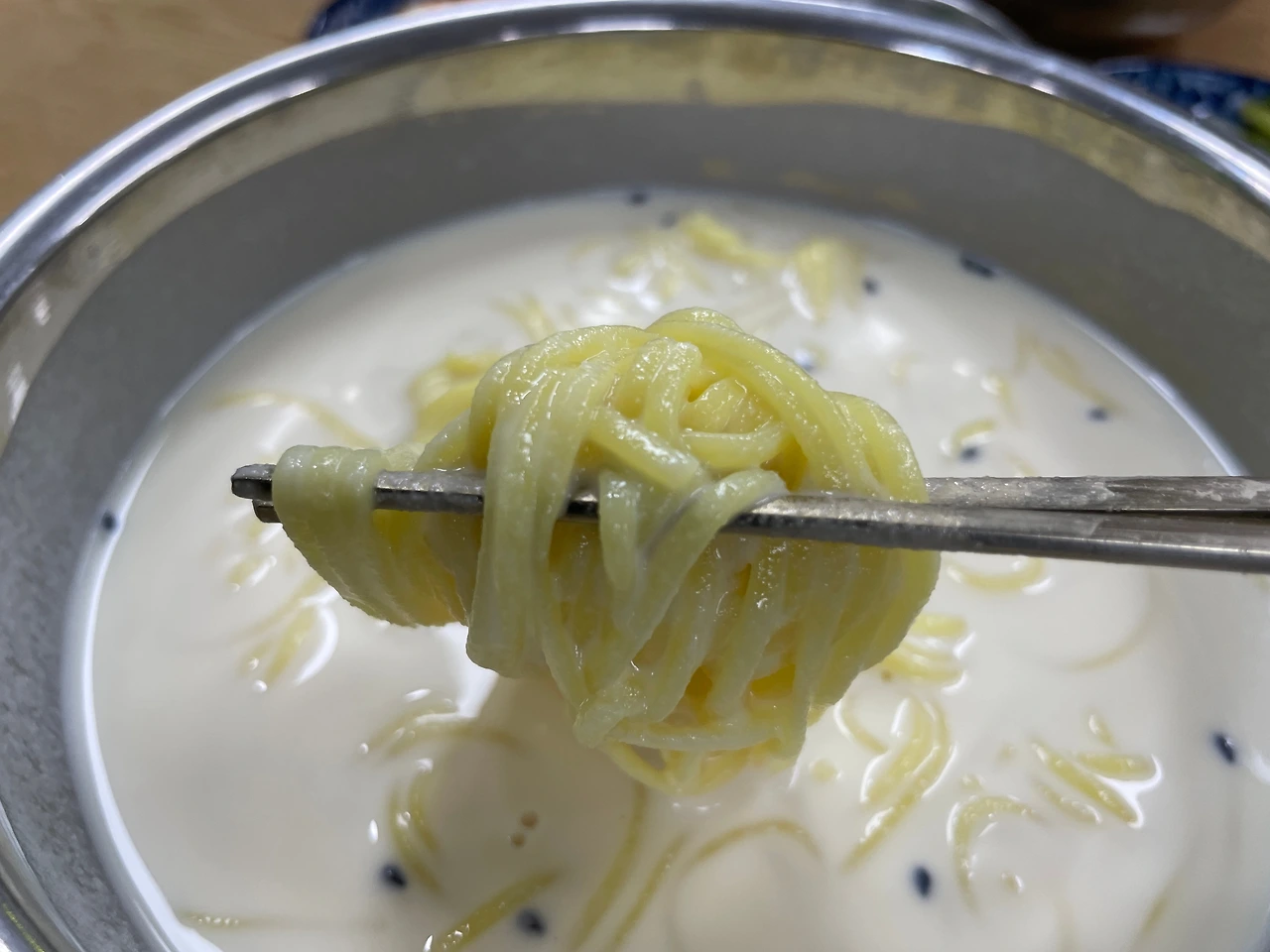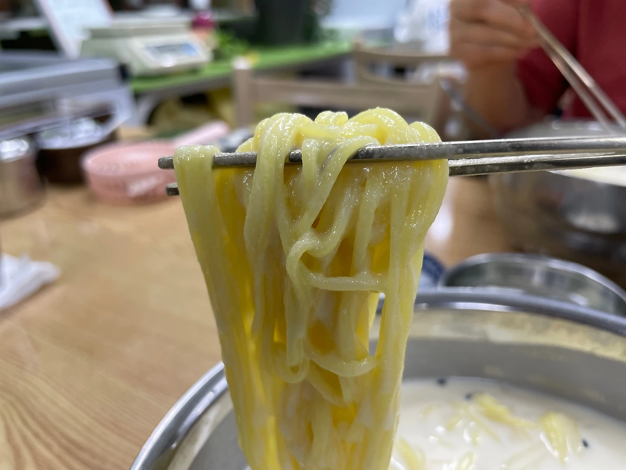 또 한 입 후루룩. 콩국물이 면에 코팅되어 고소함이 배가된다.